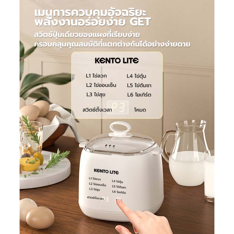 Kentolite หม้อต้มไข่ Electric Egg Cooker เครื่องไข่ต้ม เลือกระดับความสุกของไข่ได้ 4ฟอง เครื่องต้มไข่ไฟฟ้าอัตโนมัติ