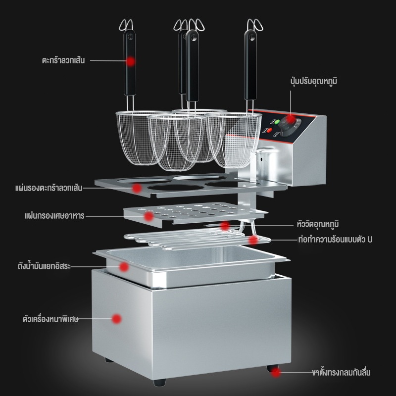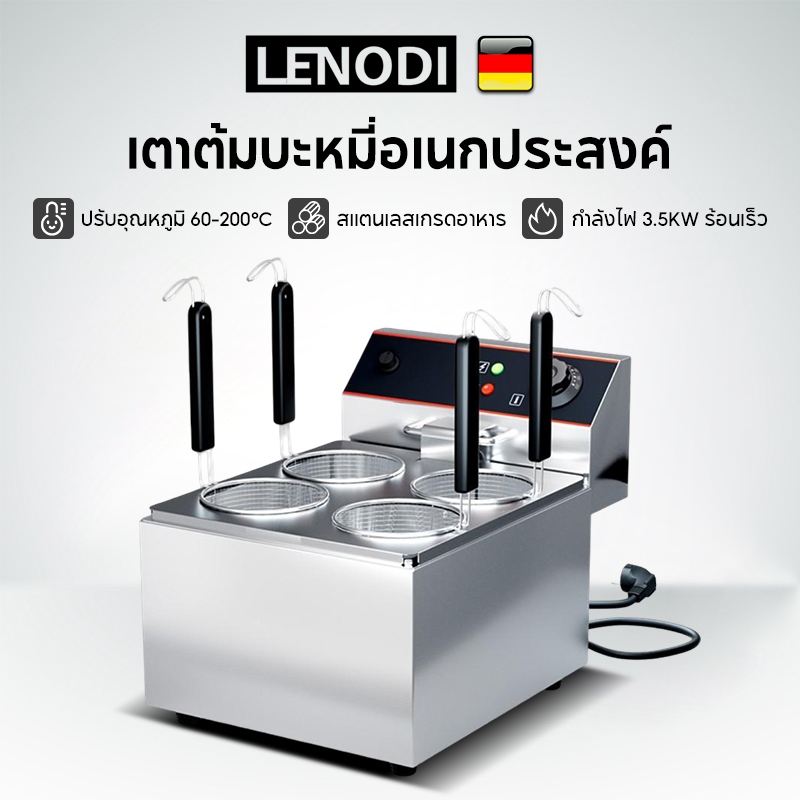 LENODI 4ช่องและ หม้อลวกเส้นก๋วยเตี๋ย วหม้อลวกเส้นไฟฟ้า ความร้อนสม่ำเสมอ สแตนเลสอย่างดี