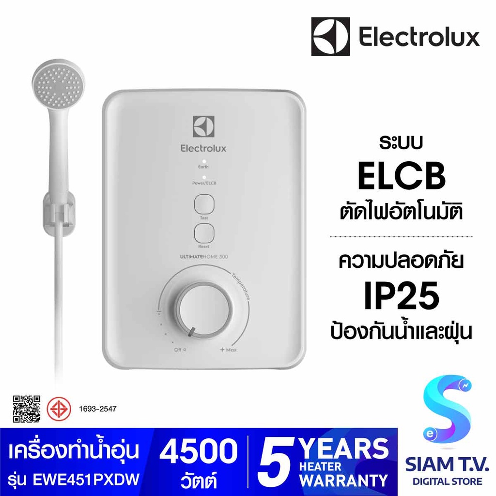 ELECTROLUX เครื่องทำน้ำอุ่น4500W รุ่นEWE451PX-DWX5 โดย สยามทีวี by Siam T.V.