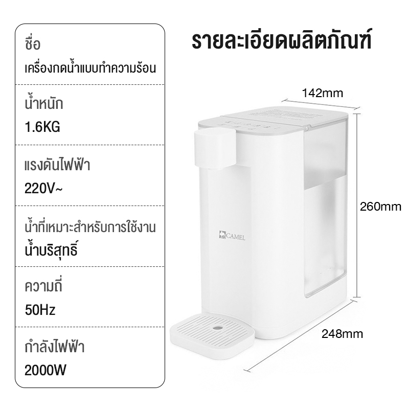 CAMEL ทำความร้อนใน 3 วินาที Instant Water Dispenser เครื่องกดน้ำร้อน ตู้ทำน้ำร้อนทันที ขนาดความจุน้ำ 3L กำลังไฟฟ้า 2200W
