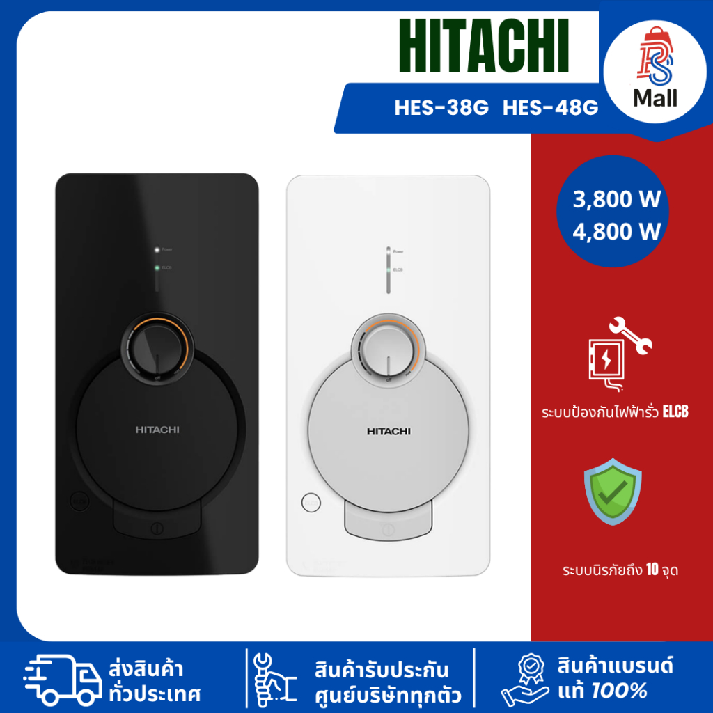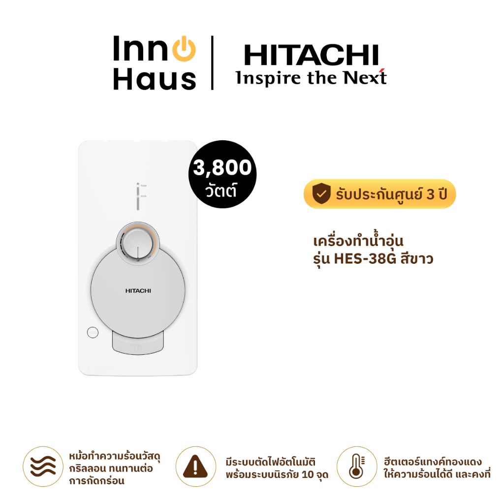 HITACHI เครื่องทำน้ำอุ่น HES-38G (3800 วัตต์/สีขาว) รับประกันศูนย์ 3 ปี