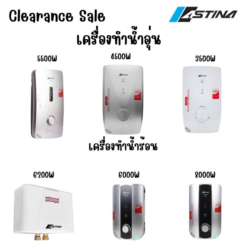 Asitnaเครื่องทำน้ำอุ่นเครื่องทำน้ำร้อนราคาถูกสินค้าใหม่และตัวโชว์สภาพใหม่95-98%รับคืนจากห้าง
