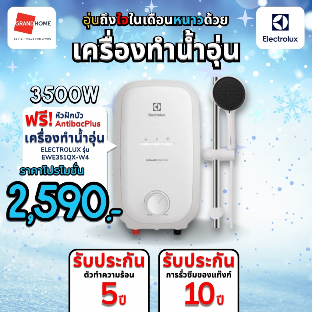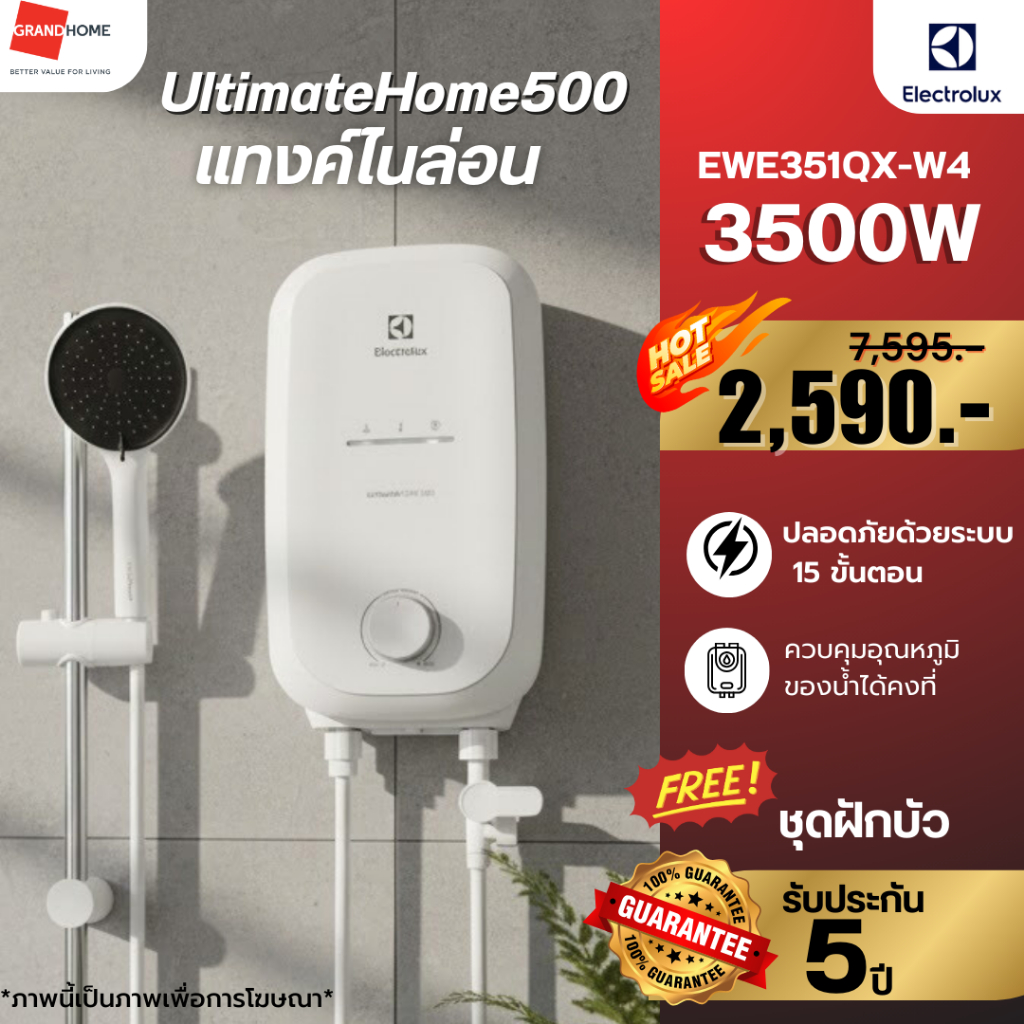 ?พร้อมส่ง? ELECTROLUX UltimateHome500 เครื่องทำน้ำอุ่น EWE351QX-W4 3500W | รับประกันชุดทำความร้อน 5 ปี