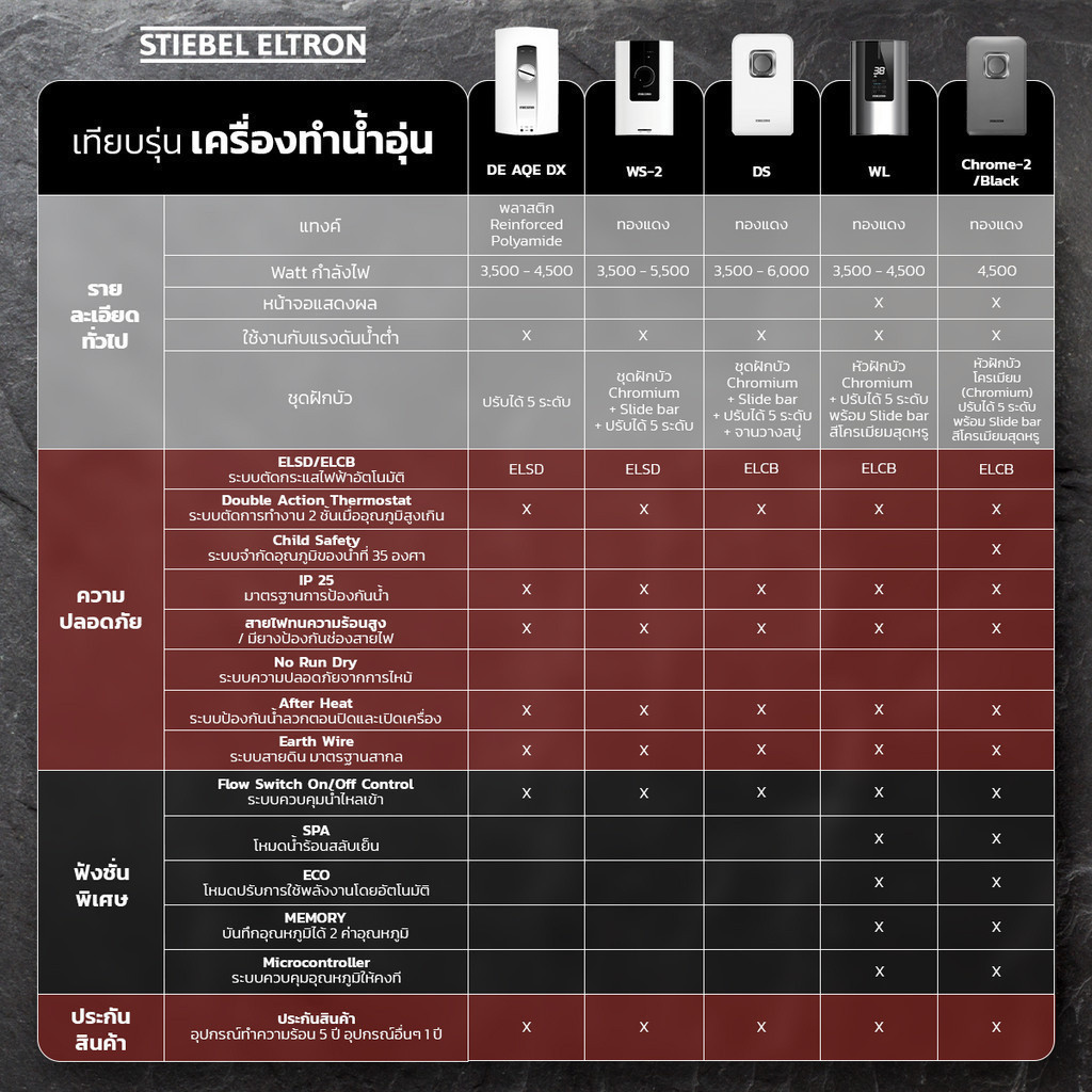 STIEBEL ELTRON เครื่องทำน้ำอุ่น รุ่น WS 45E-2 4500W รุ่น WS 35E-2 3500W รุ่น WS 55E-2 5500W