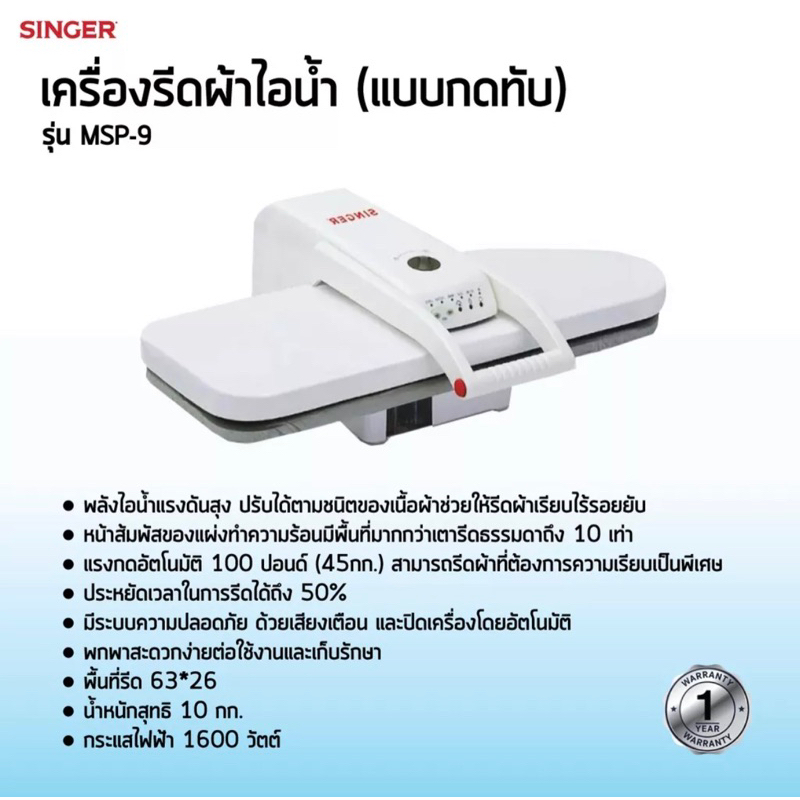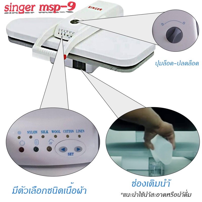 [พร้อมส่ง]SINGER Steam Press เครื่องรีดผ้าไอน้ำแบบกดทับ พลังไอน้ำแรงดันสูง รุ่น MSP-9 ประกัน 1 ปี
