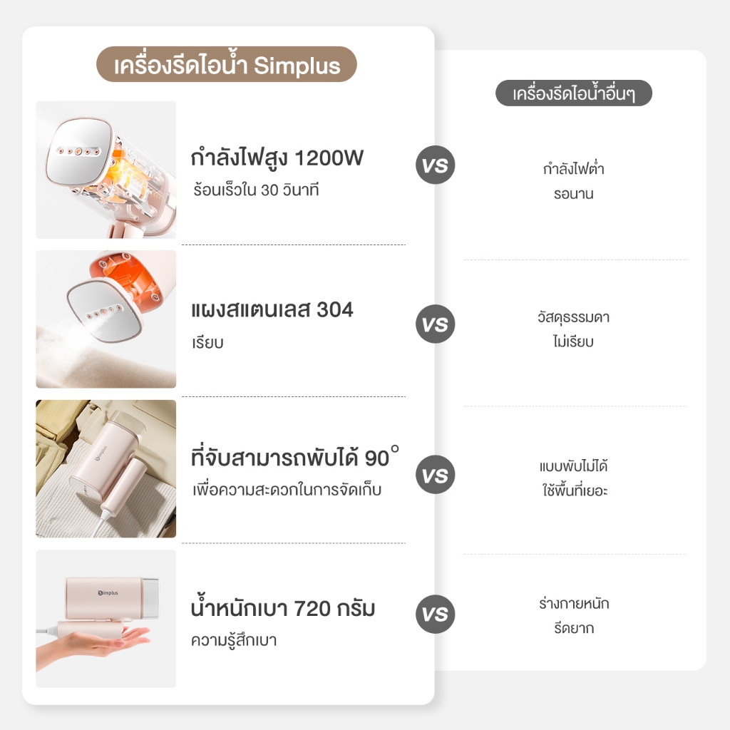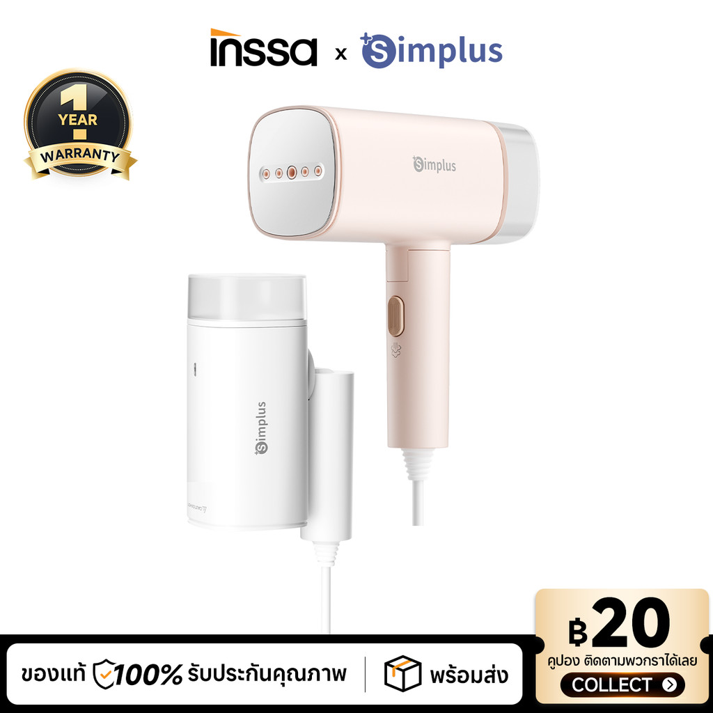 [รับประกัน 1 ปี]เครื่องรีดไอน้ำแบบมือถือ Simplus&INSSA , ลังไฟสูง 1200W ถังเก็บน้ำ 180ml แบบพกพา GTJH020