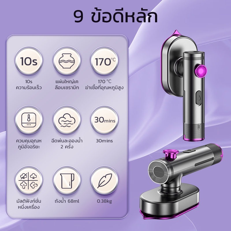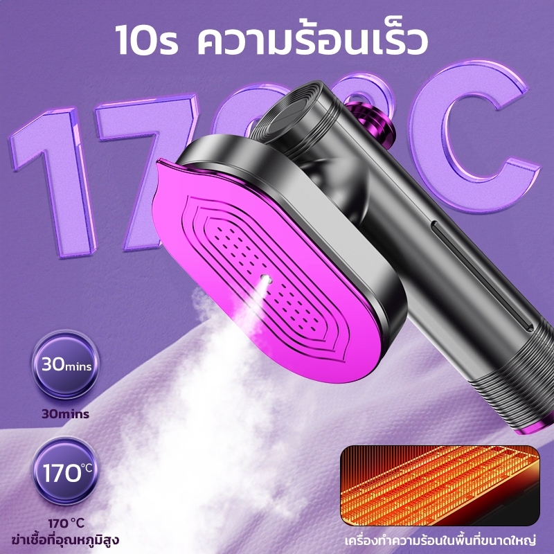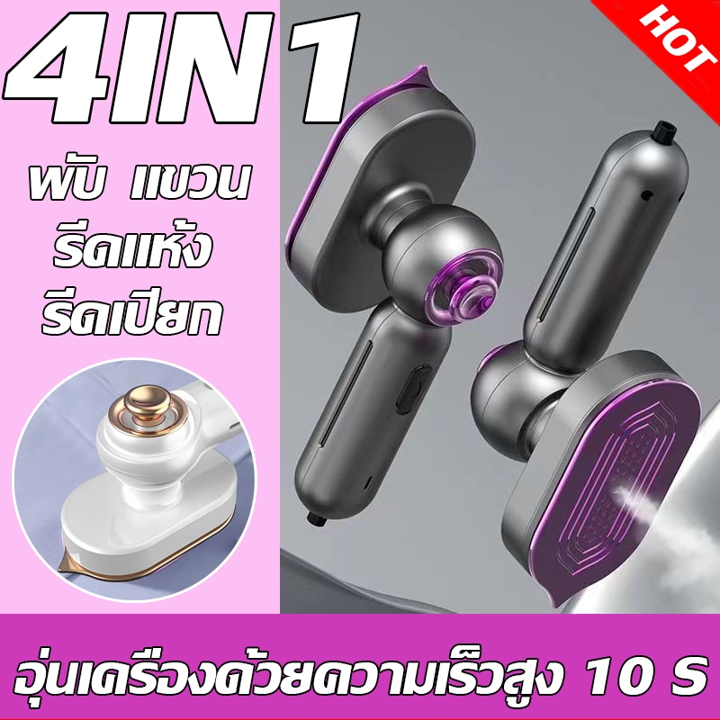 4in1เตารีดพกพา 170℃เตารีดไอน้ำใช้มือถือ10sรีดเร็ว เครื่องรีดผ้าไอน้ำขนาดเล็ก รีดแห้งและไอน้ำ ฆ่าเชื้อที่อุณหภูมิสูง 99%