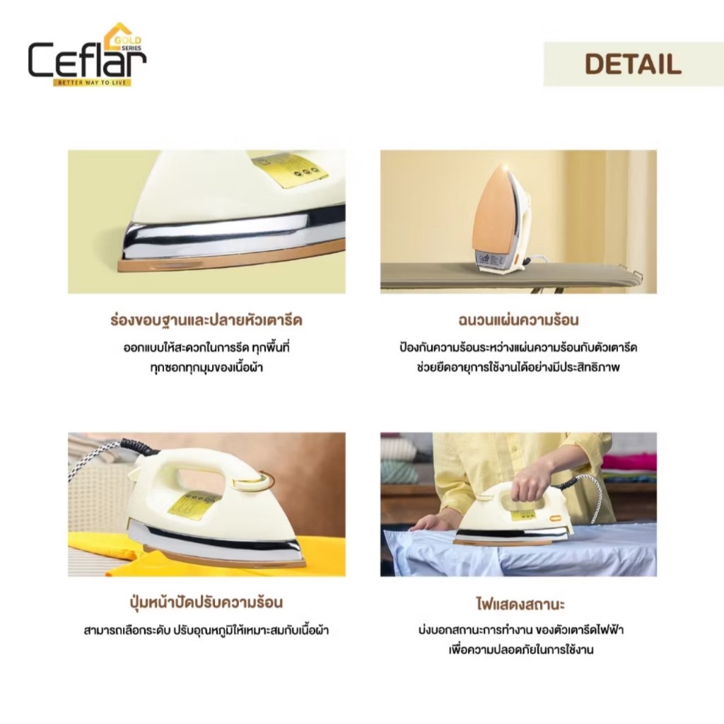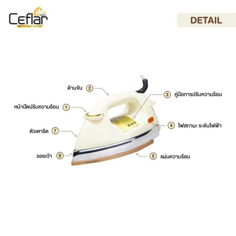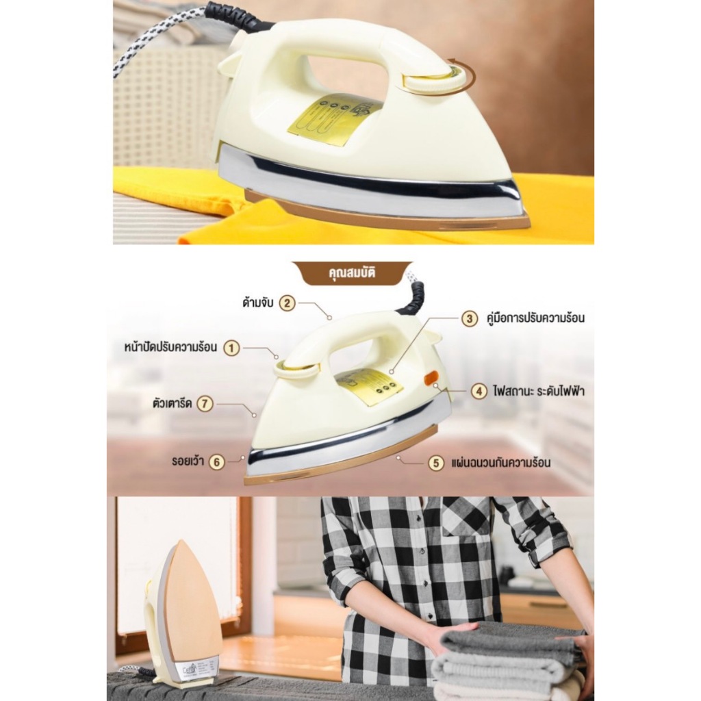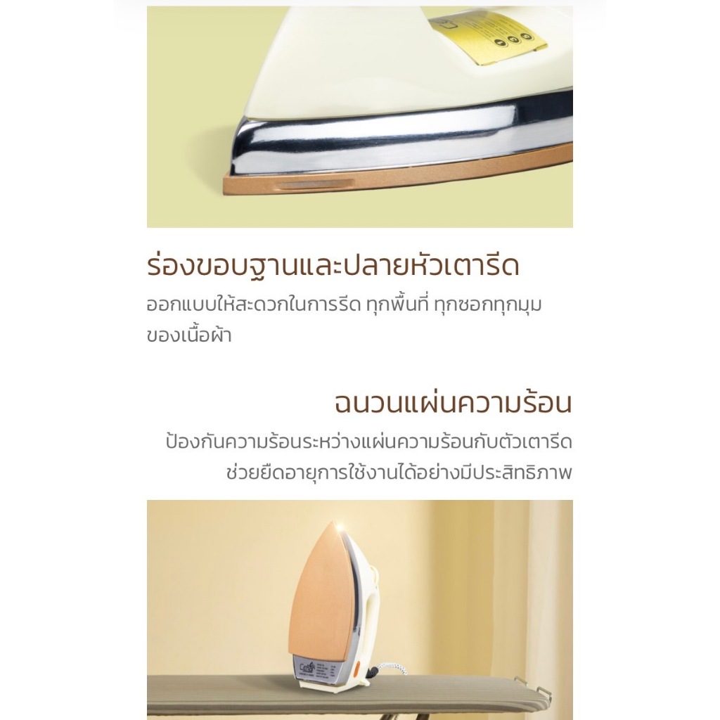 Ceflarเตารีดไฟฟ้าแบบแห้ง มีเทอร์โมสแตตรุ่นIR-005รุ่นคลาสสิค เตารีดแห้ง เตารีดหนัก รับประกัน 1 ปี มีมอก.กำลังไฟ1000วัตต์