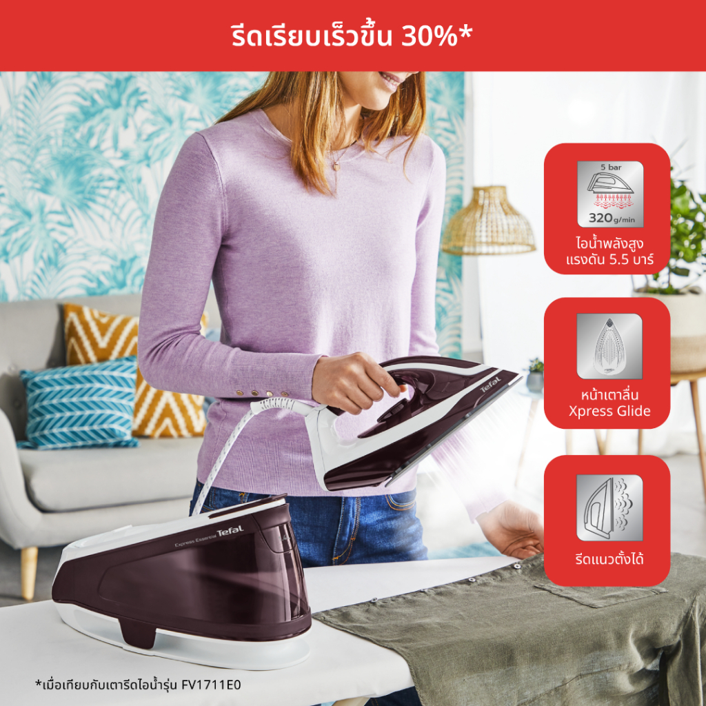 ?? TEFAL เตารีดแรงดันไอน้ำพลังสูง Xpress Glide 2200วัตต์ (แรงดัน5บาร์) รุ่น SV6110 รับประกันศูนย์ไทย2ปี