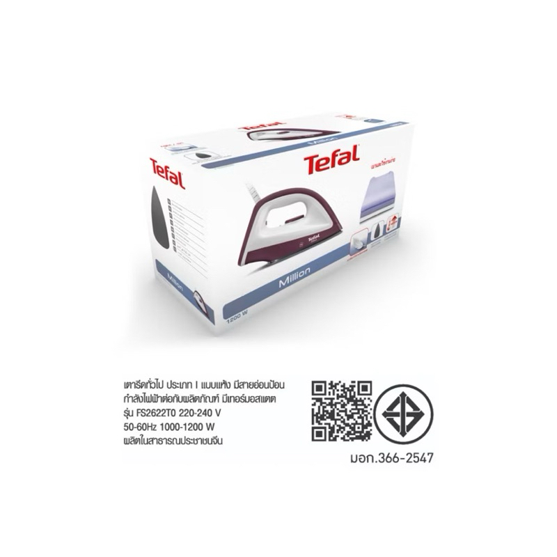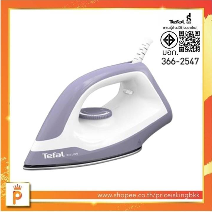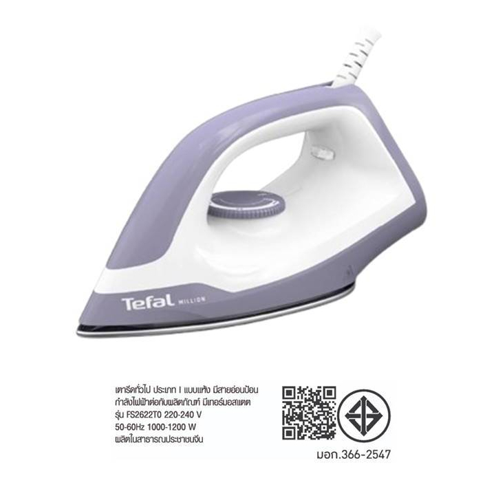 ???Tefal เตารีดแห้ง แผ่นเตาเคลือบ NonStick 1,200 วัตต์ รับประกัน 2 ปี มอก.366-2547