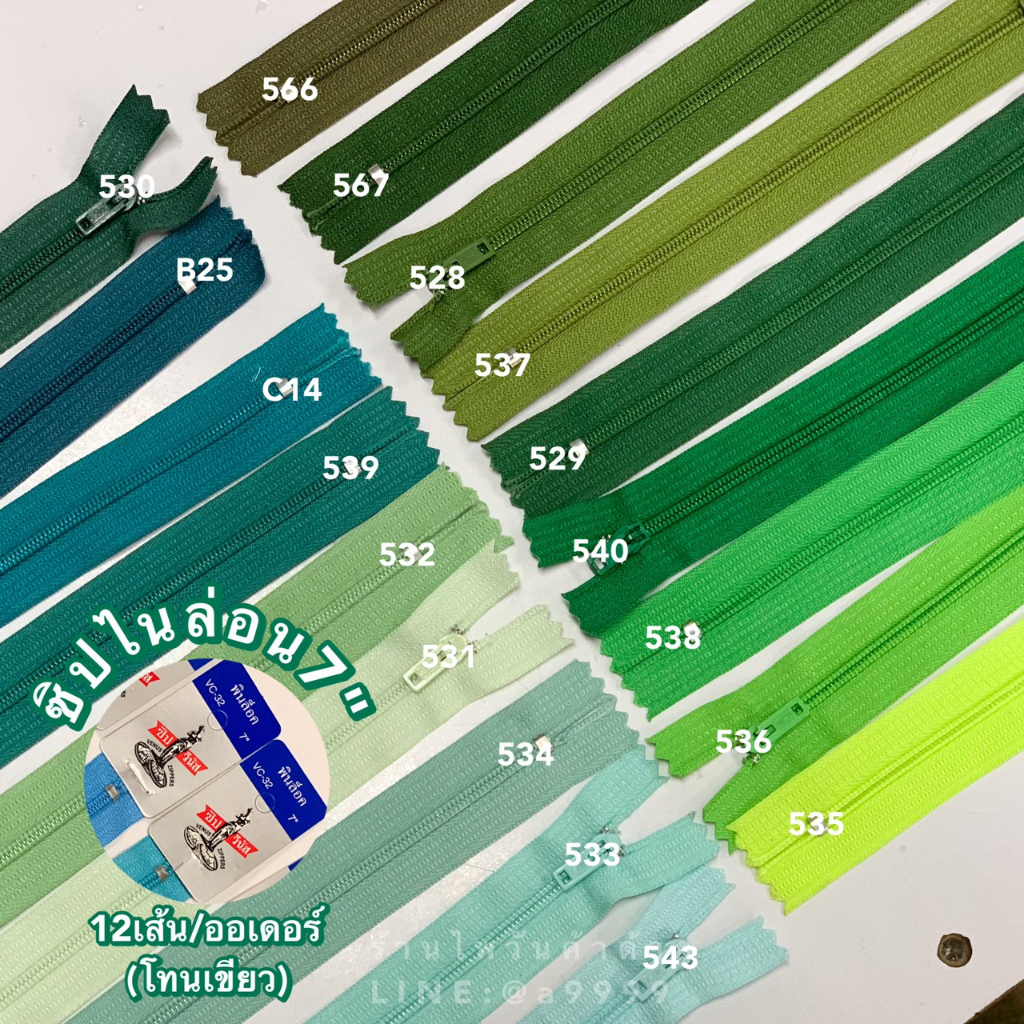 (ยกโหล)ซิปไนล่อนตราวีนัสVENUS 7-8นิ้ว VC-32พินล็อค (โทนสีเขียว) ถูกที่สุด‼️