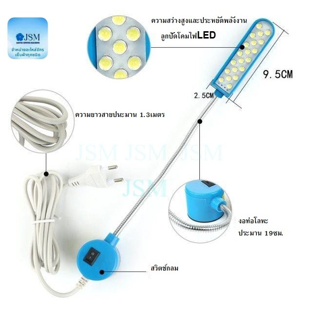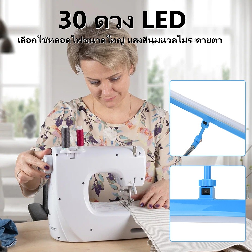 ไฟ LED จักรเย็บผ้า ปรับมุม 360° Sewing Machine Light ไฟถนอมสายตา 10W งูปรับได้ ขั้วเสียบ LED Adjustable