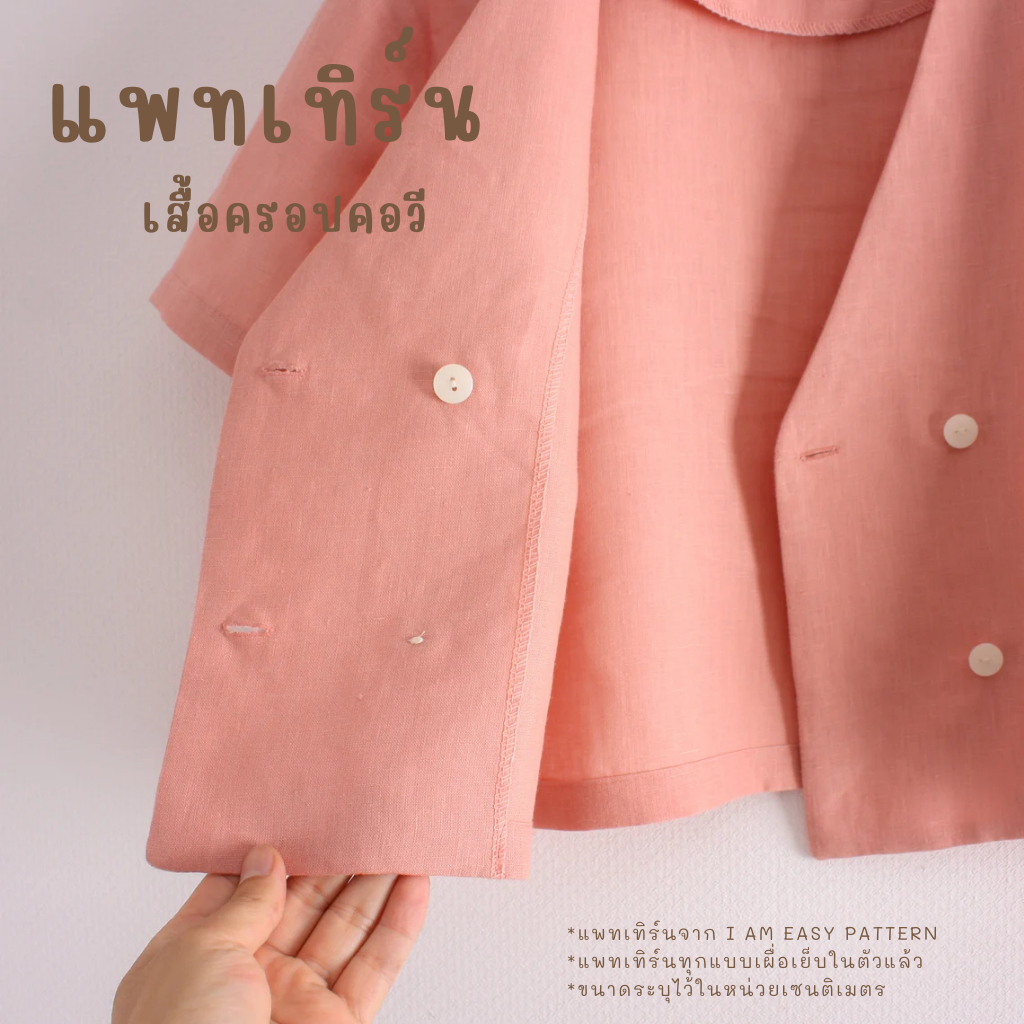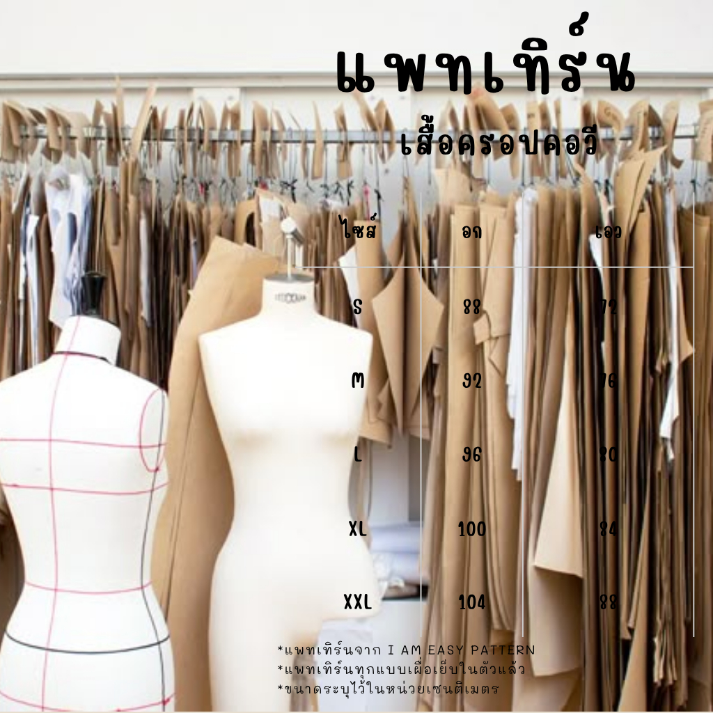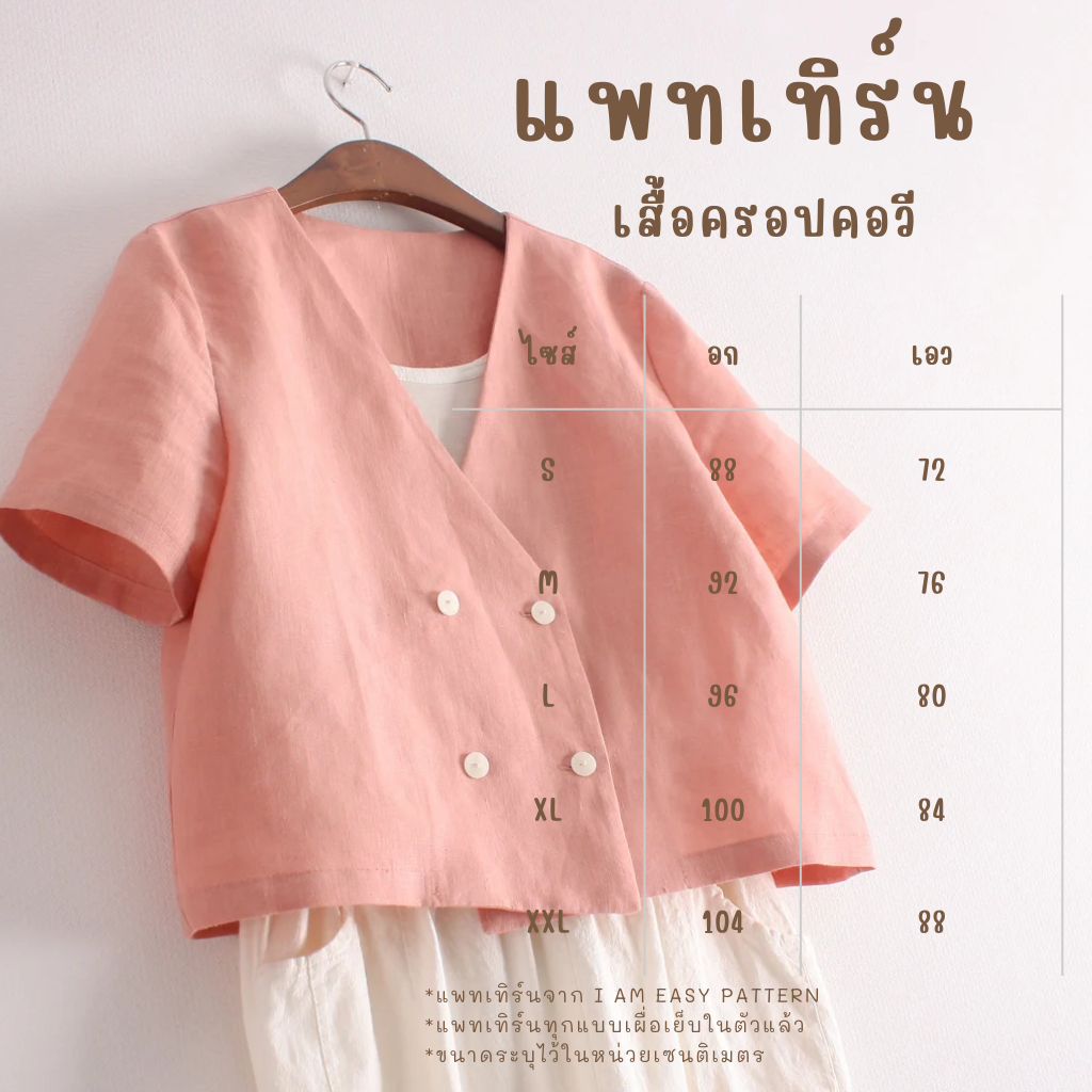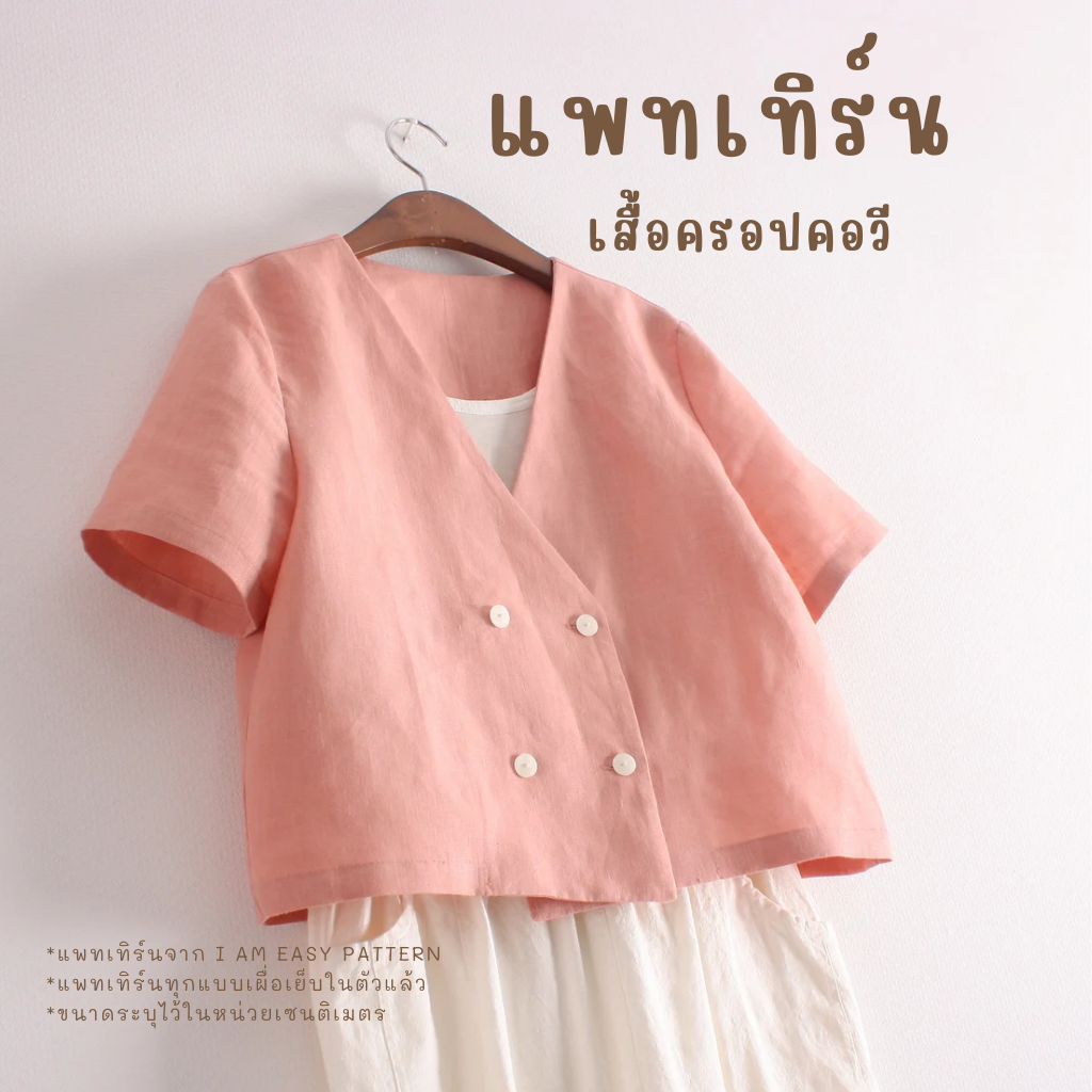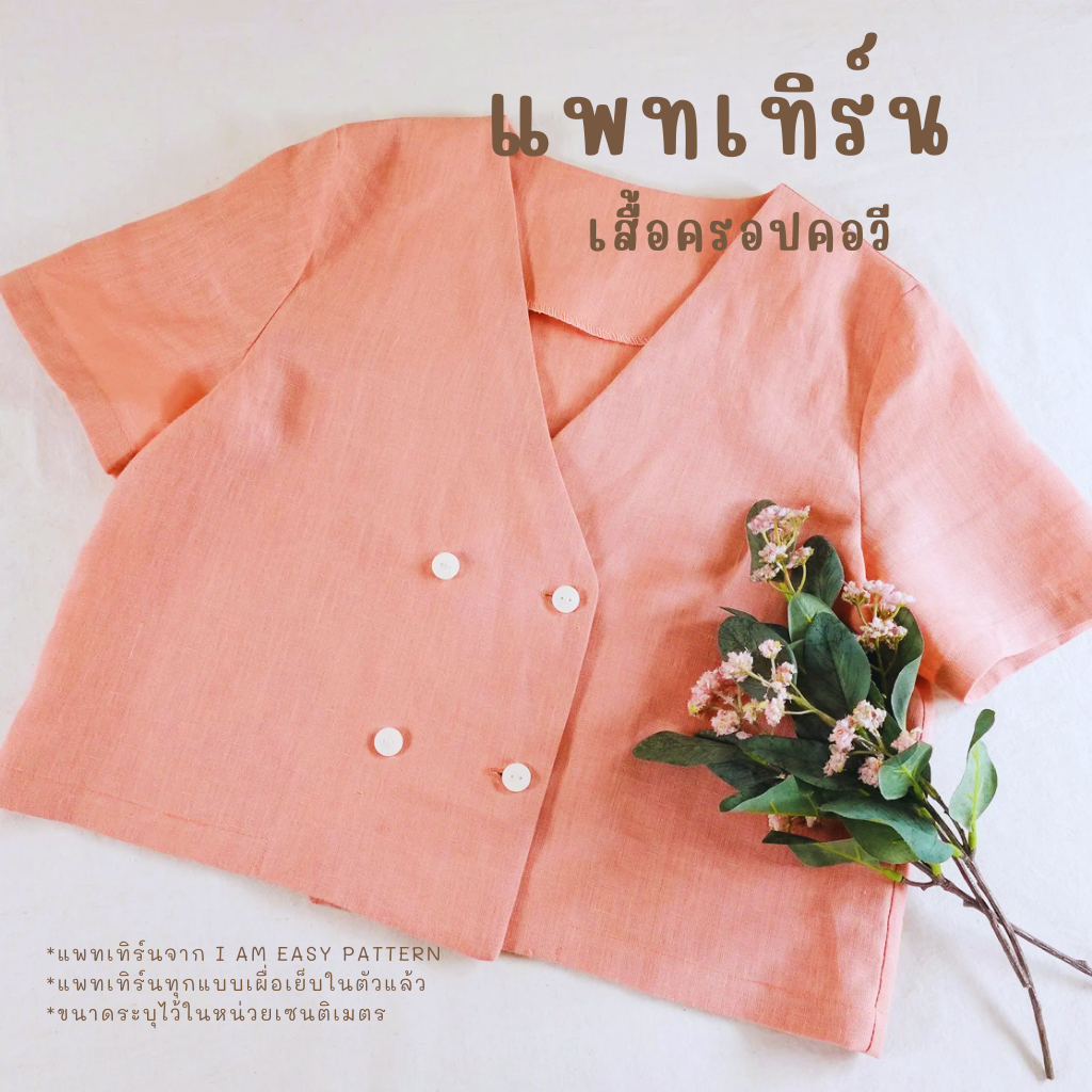 แพทเทิร์นเสื้อครอป คอวีแขนสั้น สำหรับตัดเย็บเสื้อผ้า มีพร้อมส่ง