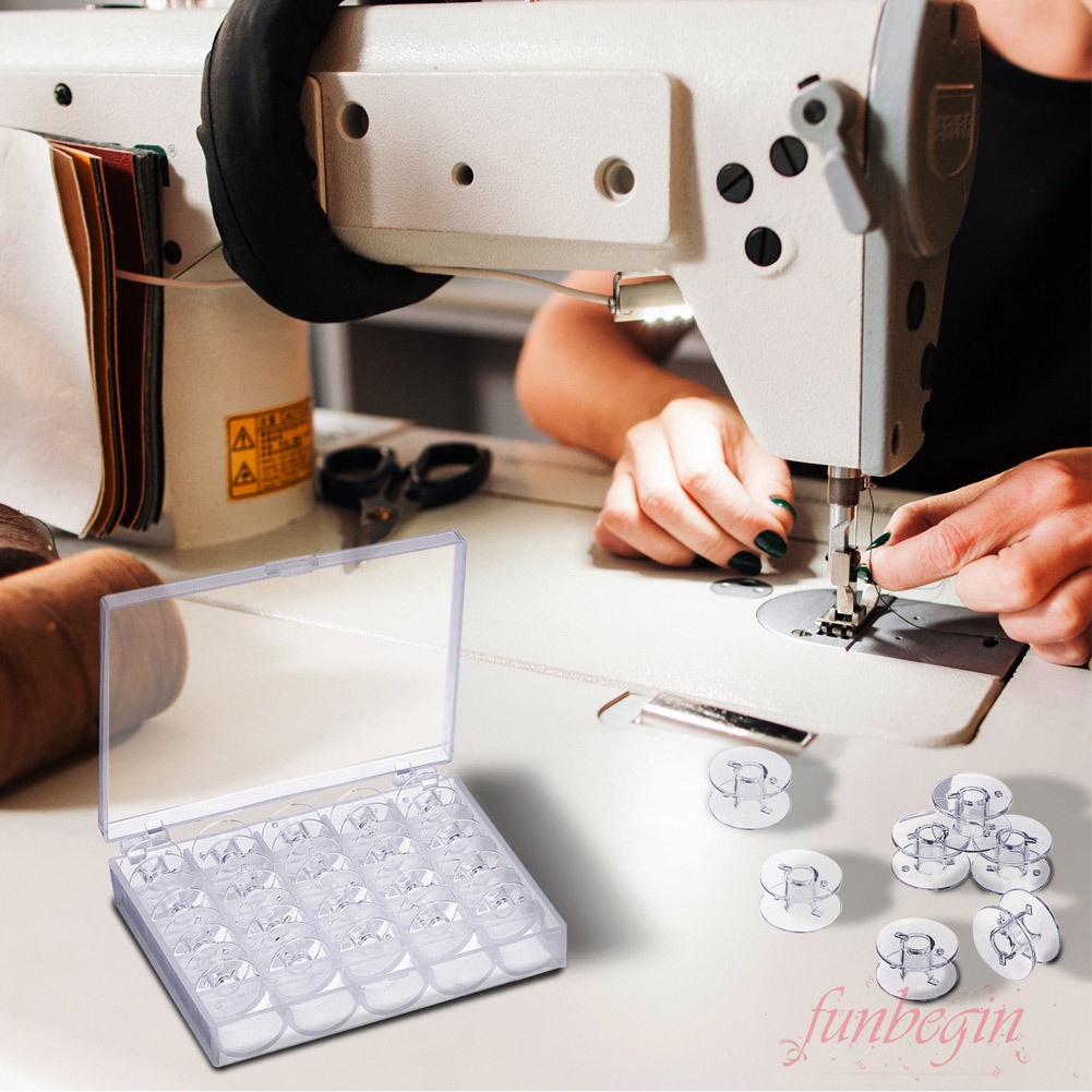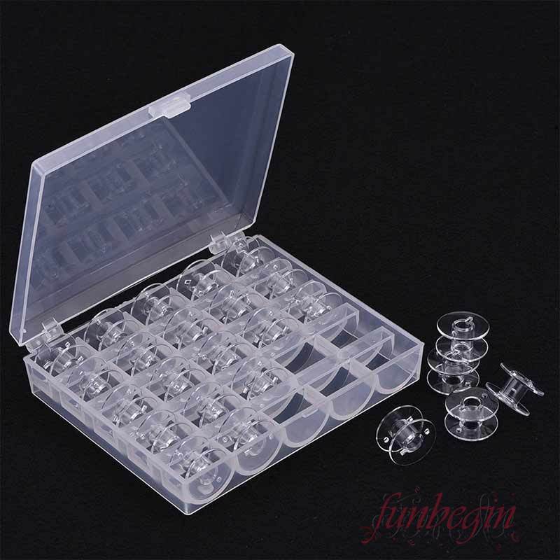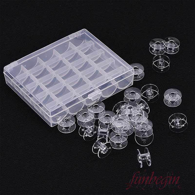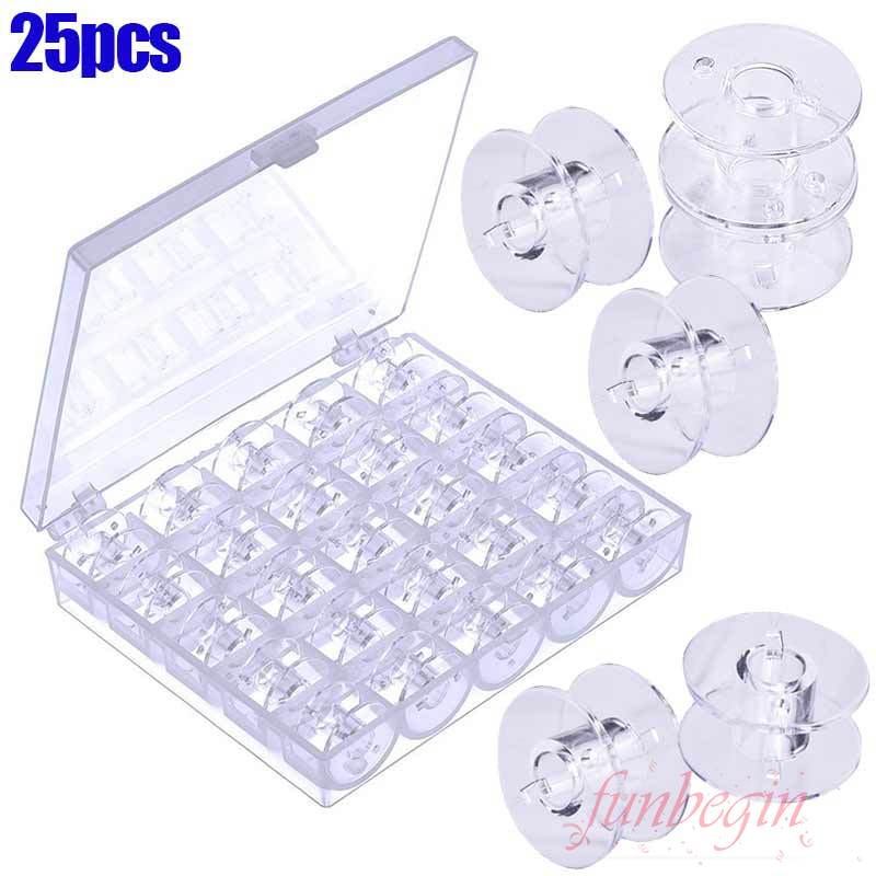 กระสวยเปล่า พลาสติกใส พร้อมกล่องเก็บ สําหรับจักรเย็บผ้า Brother Janome Singer Elna 25 ชิ้น