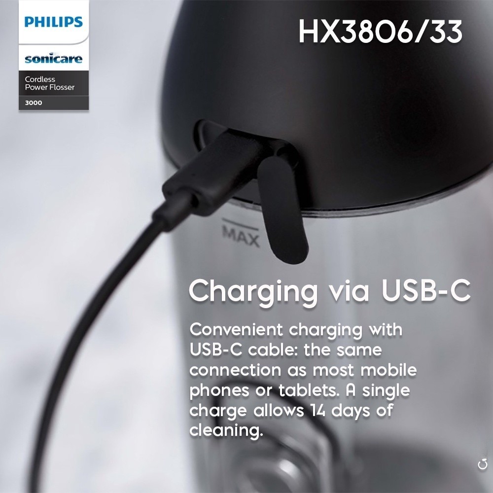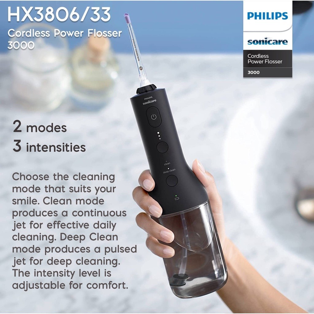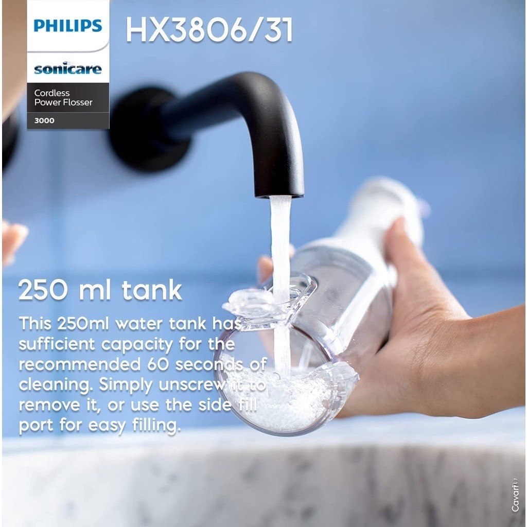 Philips Sonicare HX3806 ไหมขัดฟันไร้สาย 3000 เครื่องชลประทานในช่องปากพร้อมเทคโนโลยีสตรีม Quad