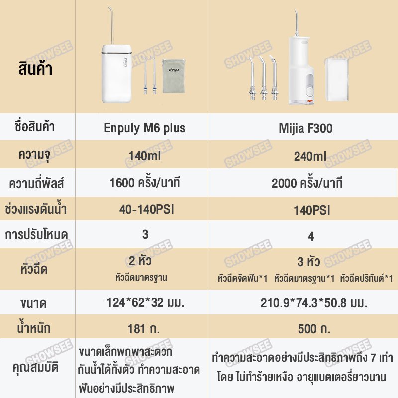 Enpuly M6 Oral Irrigator Water Flosser เครื่องกำจัดสิ่งสกปรกในช่องปาก130ML IPX8 กันน้ําหมุนได้ 360