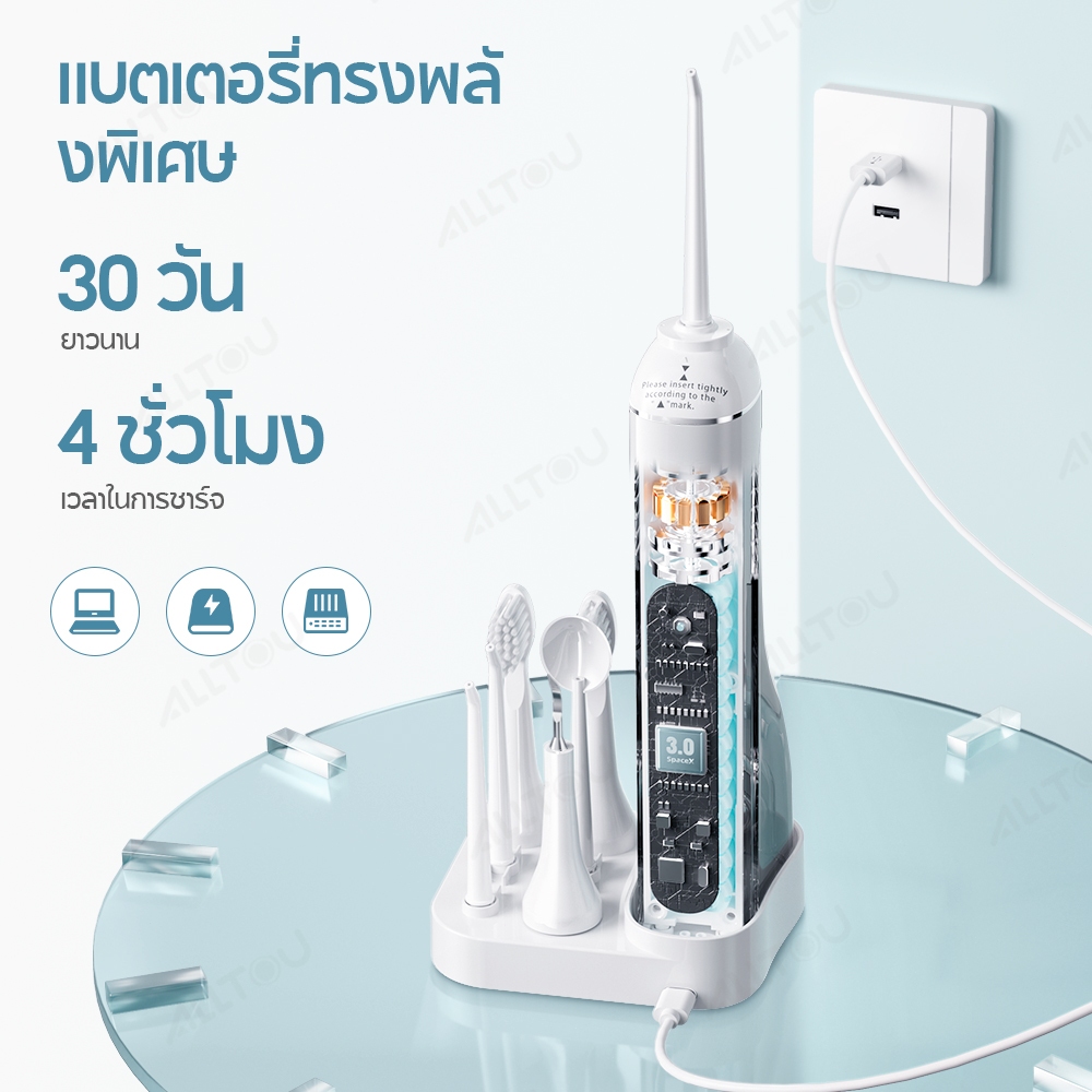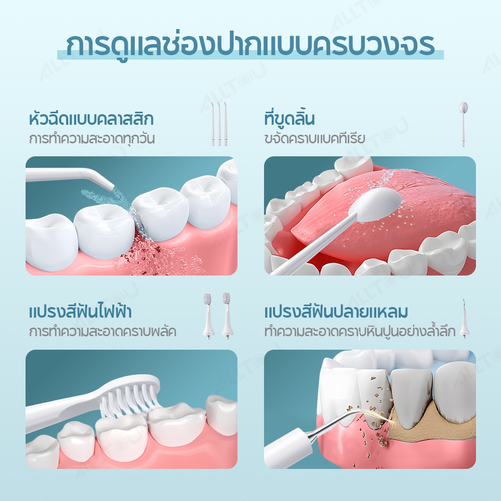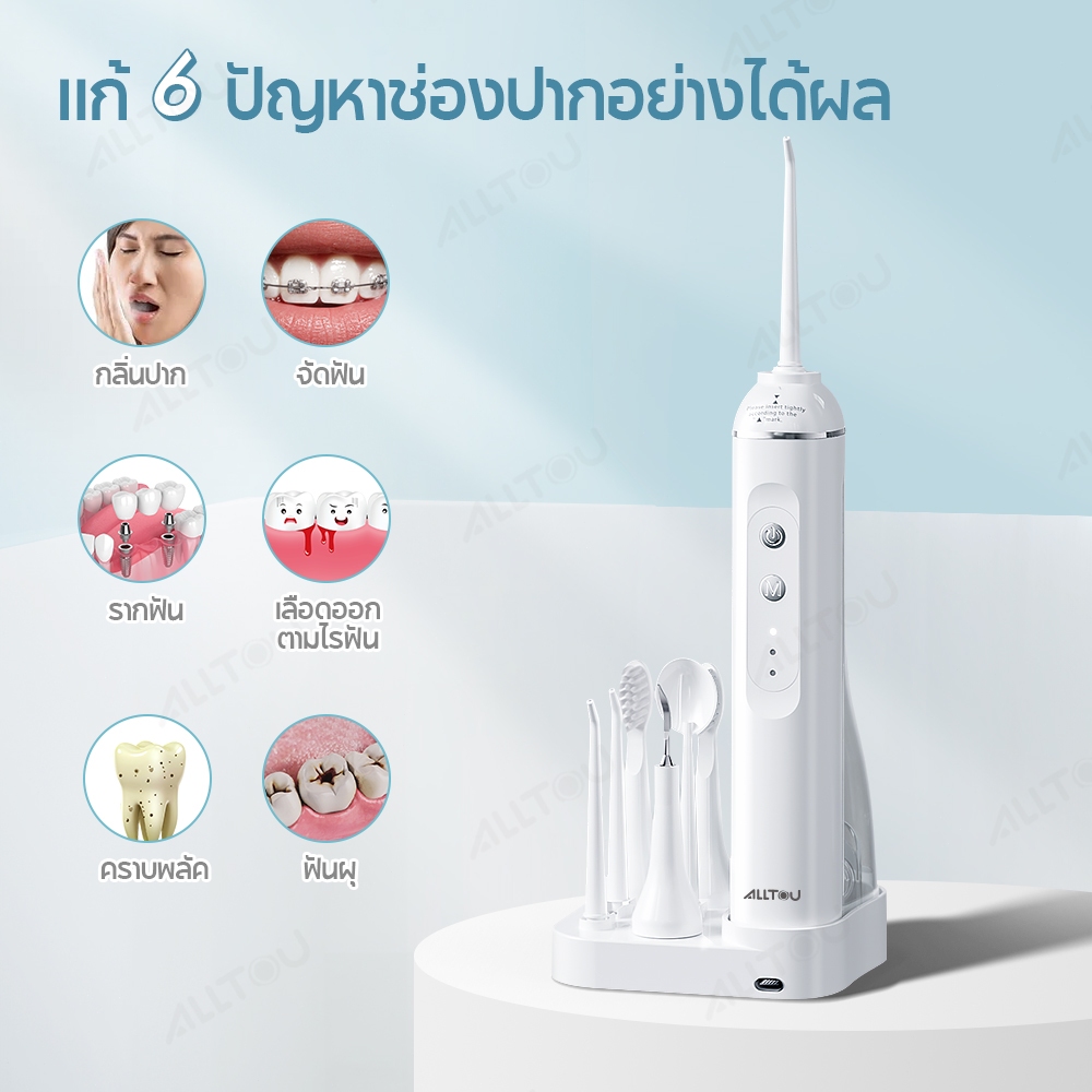 ALLTOU ไหมขัดฟันพลังน้ำ 4 IN 1 Water Flosser 3 โหมดการทำความสะอาด เครื่องล้างฟัน ขจัดคราบพลัคตามซอกฟัน(หัวฉีดแบบคลาสสิก