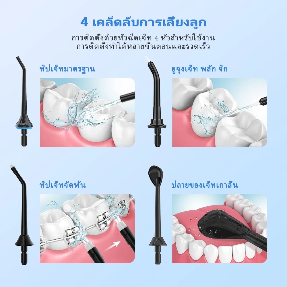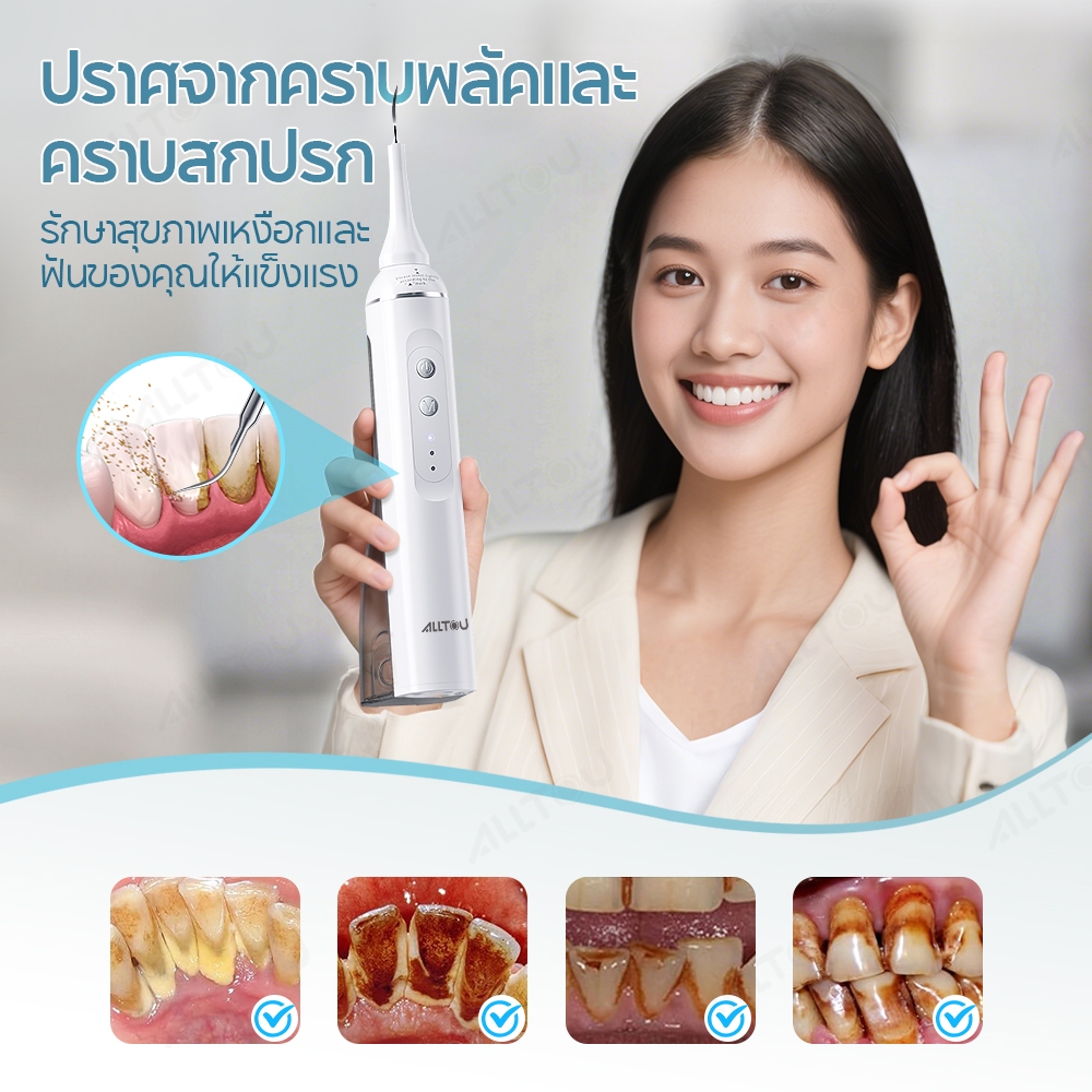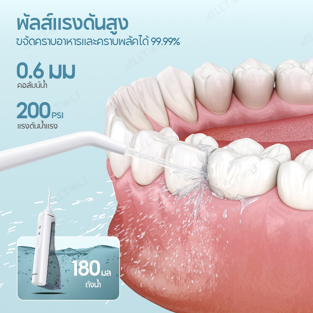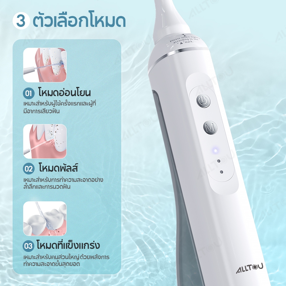 ALLTOU ไหมขัดฟันพลังน้ำ 4 IN 1 Water Flosser 3 โหมดการทำความสะอาด เครื่องล้างฟัน ขจัดคราบพลัคตามซอกฟัน(หัวฉีดแบบคลาสสิก