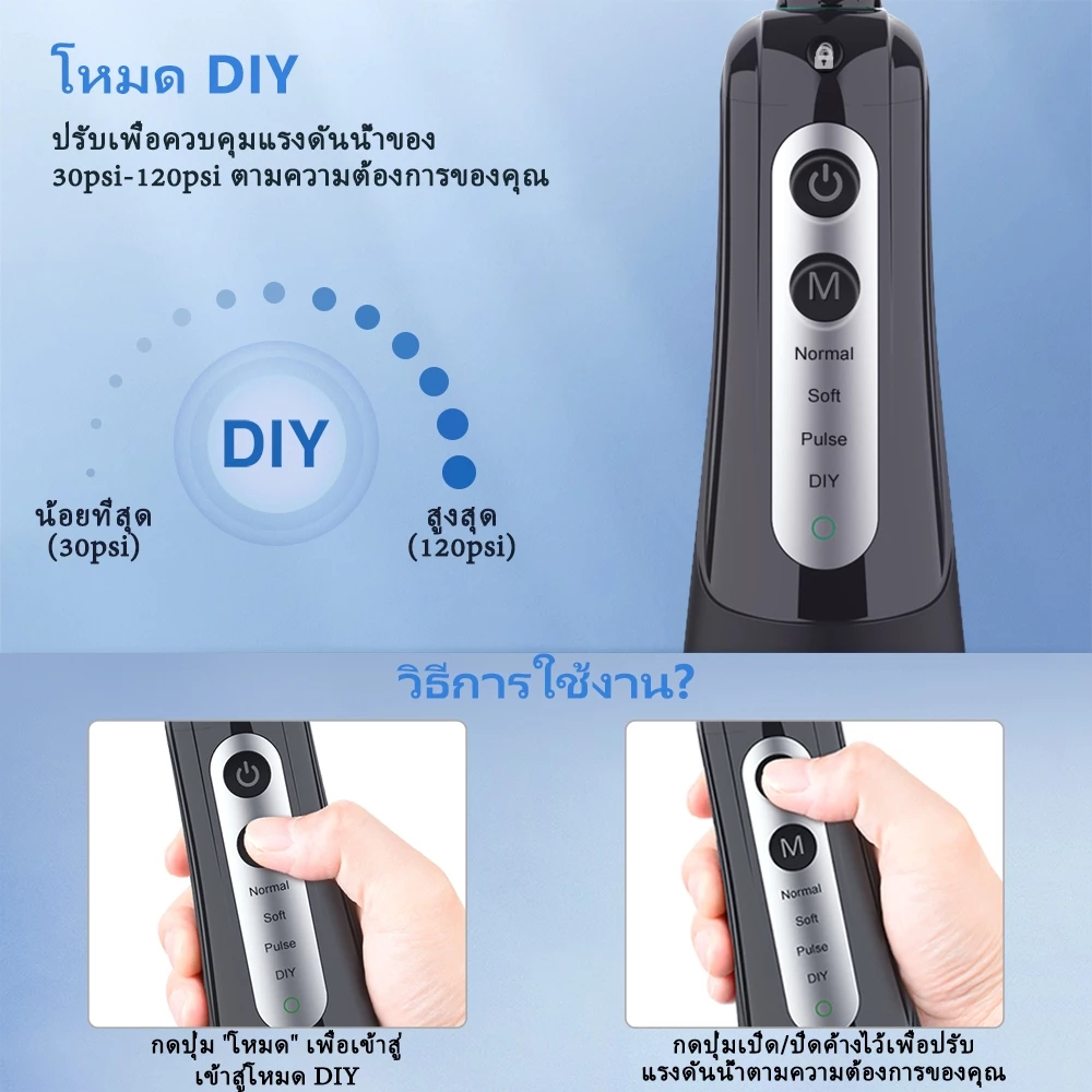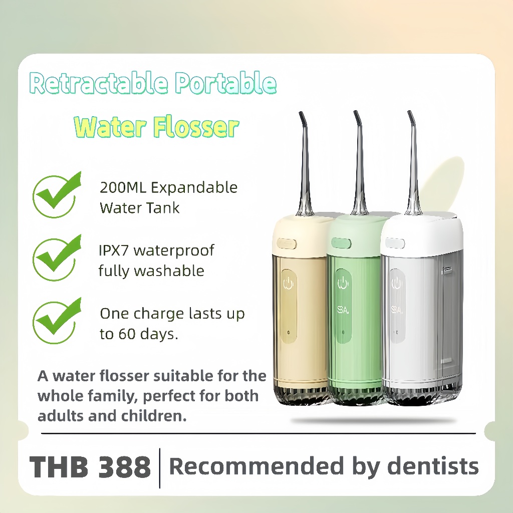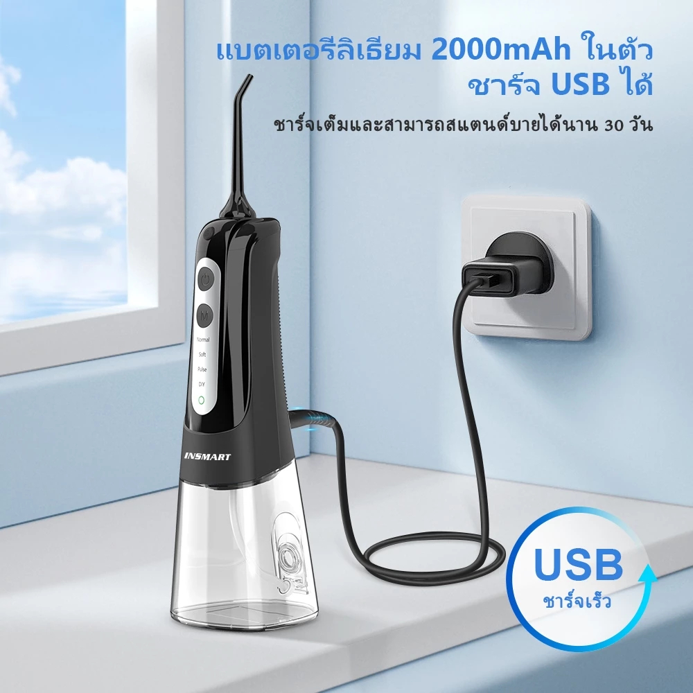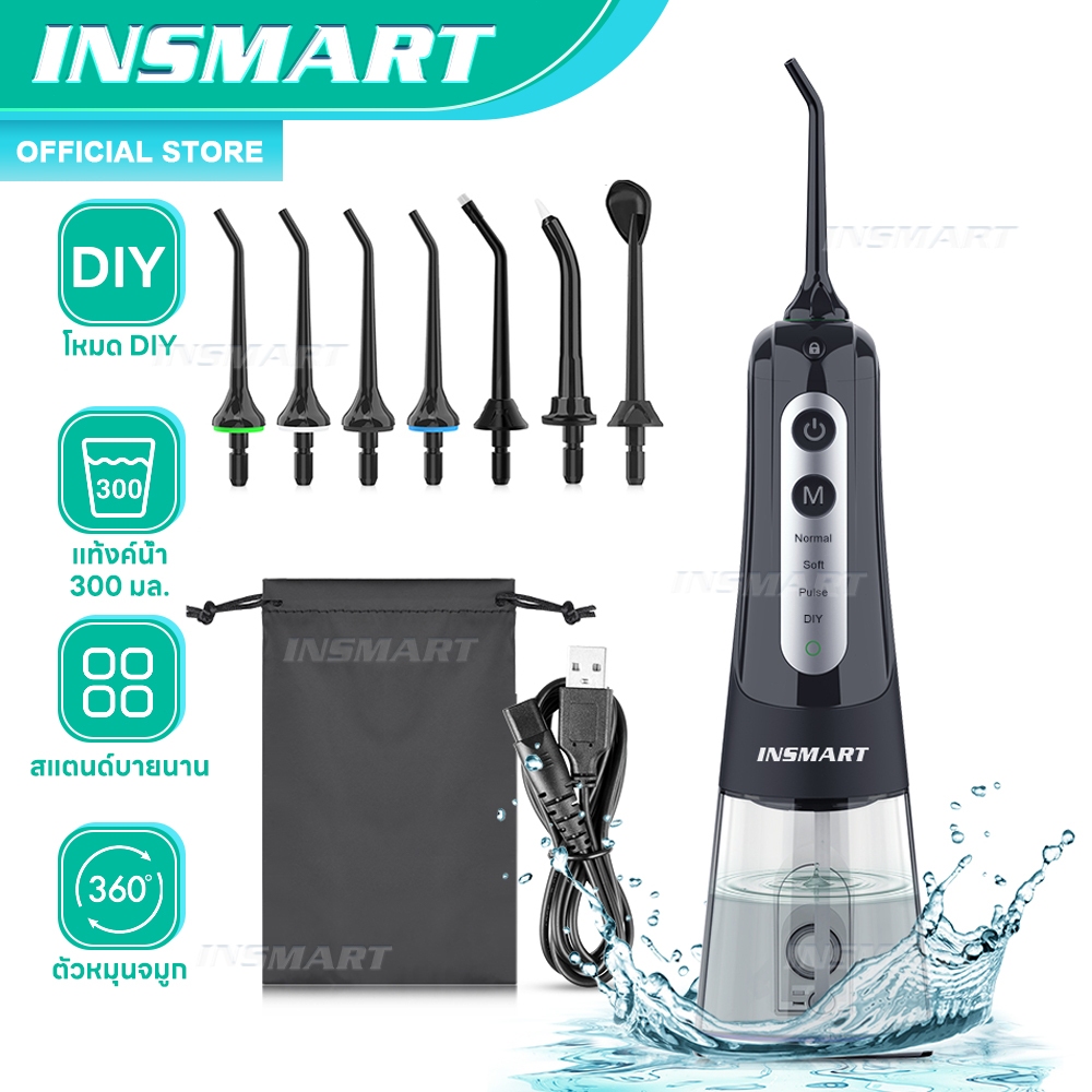 INSMART Water Flosser IPX7 กันน้ํา พกพาง่าย ถอดล้างสะอาด 7หัวฉีด 4โหมด ขจัดคราบพลัคตามซอกฟัน