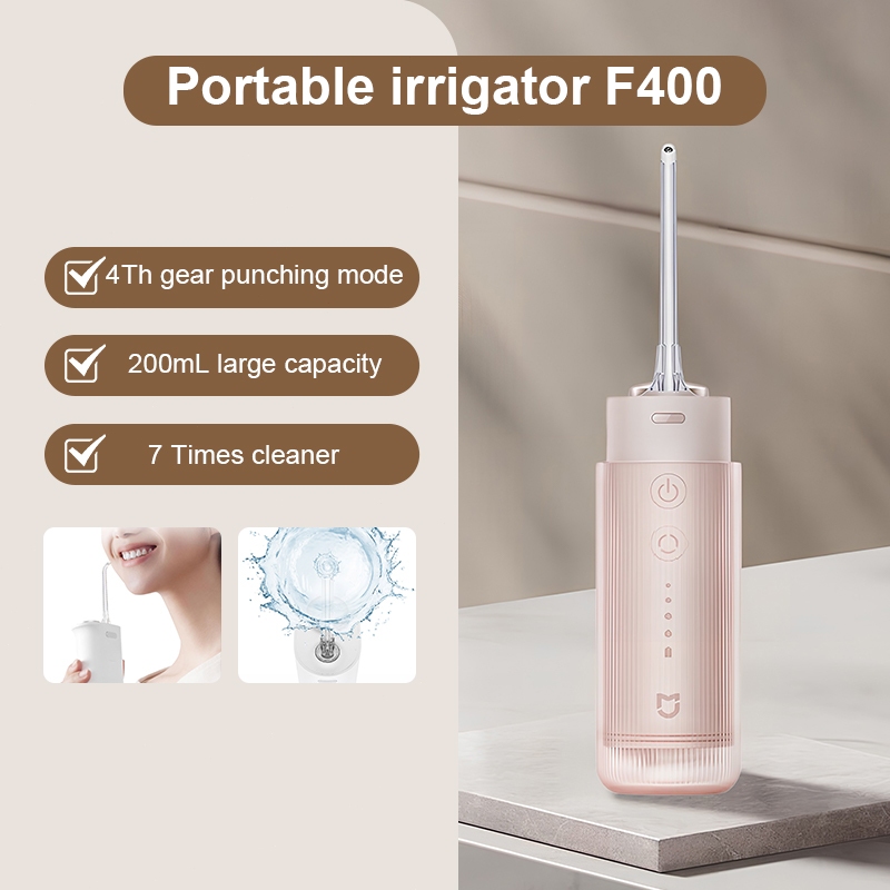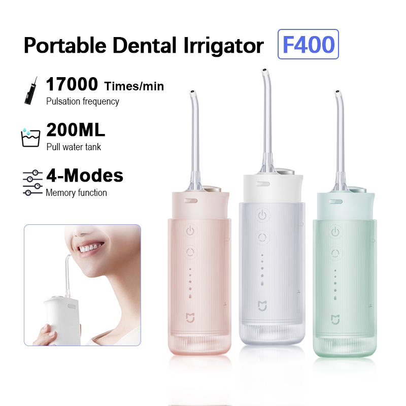 Xiaomi Mijia Portable Water Flosser F400 หัวฉีดเก็บร่างกายแบบตรวจจับเมฆ โหมดฉีดน้ำแบบ 4 สปีด
