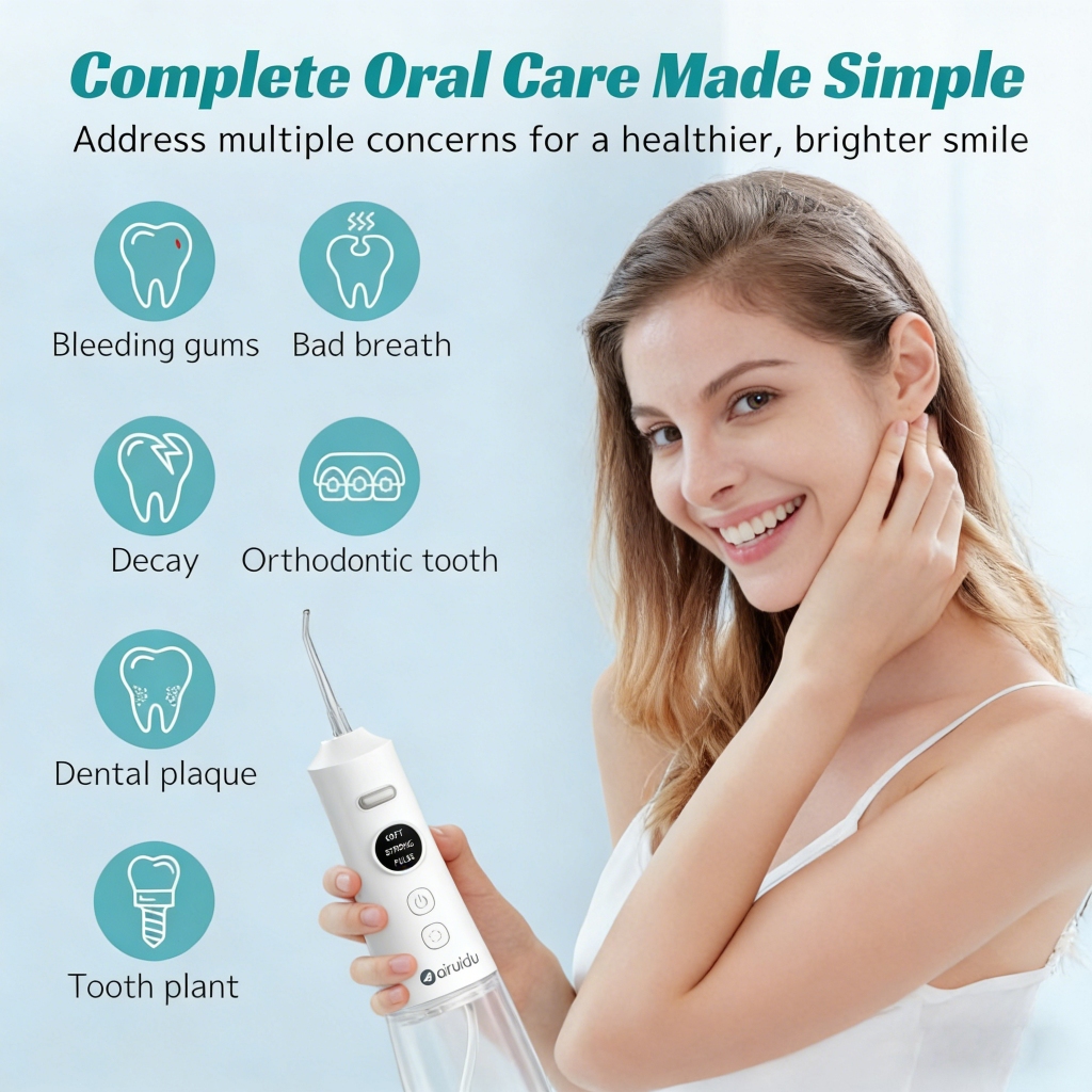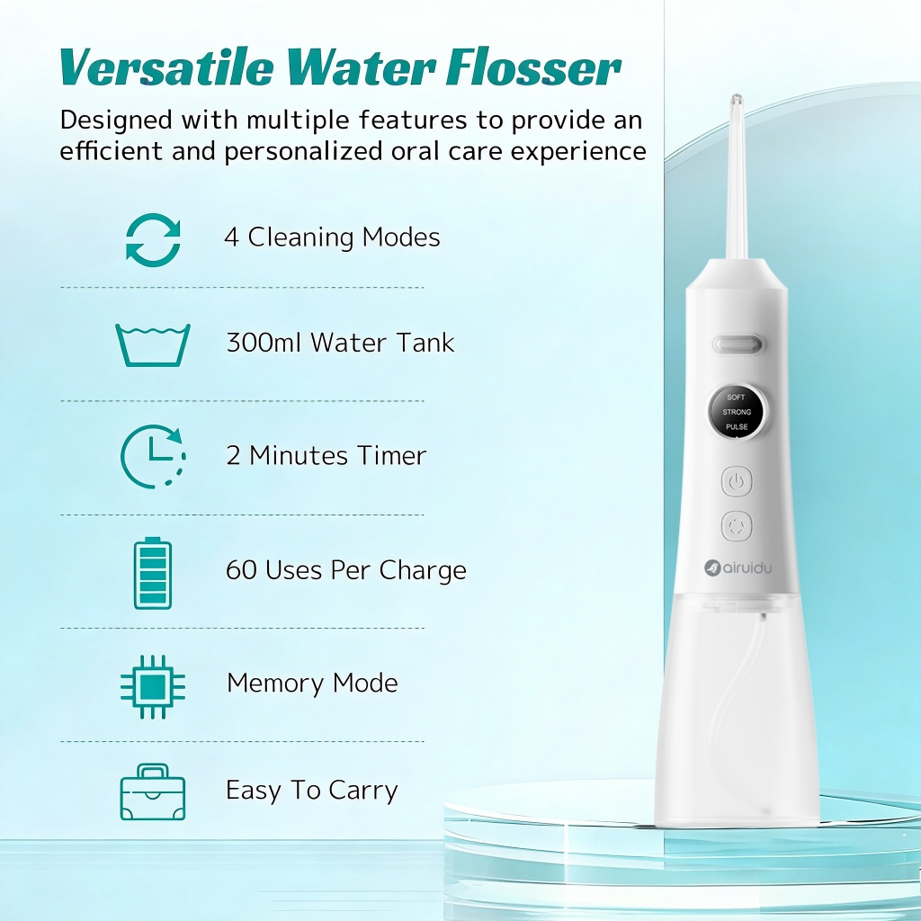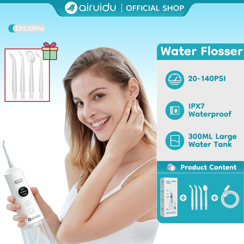 Airuidu CF530Pro Water Flosser ไหมขัดฟันพลังน้ำ ความจุขนาดใหญ่พิเศษ 300มล ถังน้ำ IPX7ขจัดคราบพลัคตามซอกฟัน โปรโมชั่นใหญ่