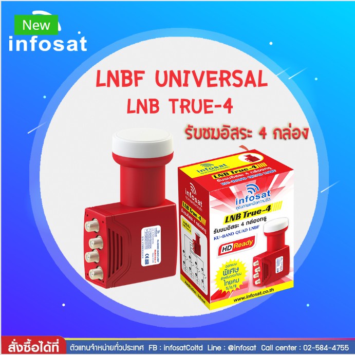 LNB True-4 ยี่ห้อ INFOSAT (ความถี่ Universal) แยกอิสระ 4ขั้ว ใช้กับจานทึบและกล่องทุกรุ่น