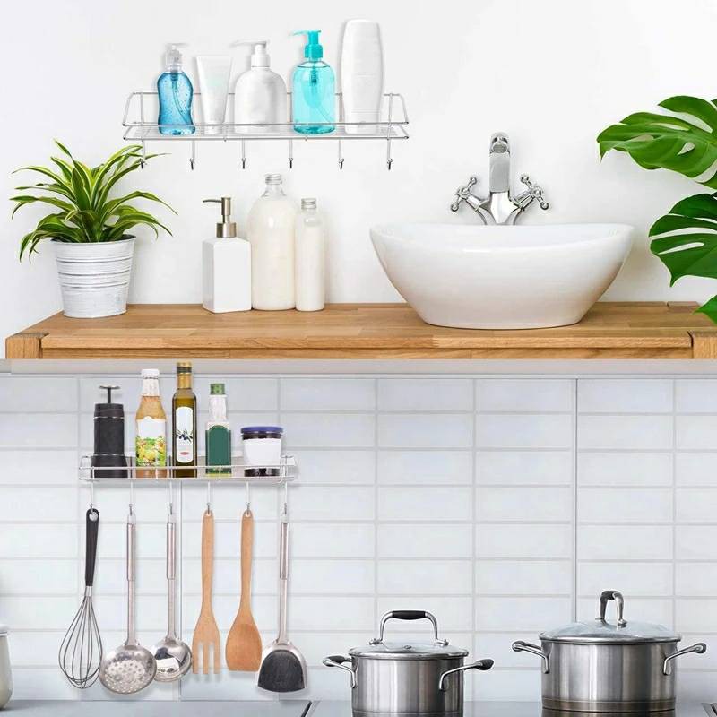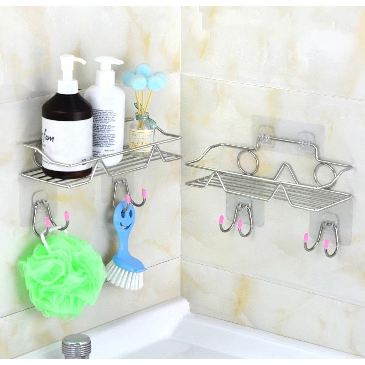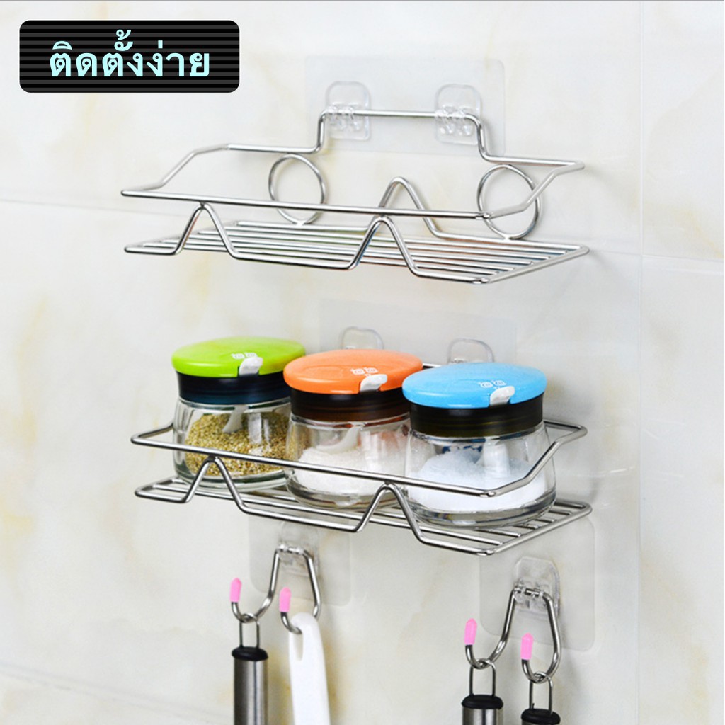 (แถมฟรีตะขอแขวน) ชั้นวางของในห้องน้ำ ห้องครัว ที่เก็บของ อเนกประสงค์ ชั้นวางของในห้องน้ำ ชั้นวางของติดผนัง อเนกประสงค์