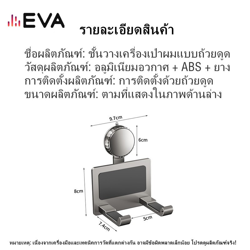 【EVA】【จัดส่งจากกรุงเทพ】อีวาชั้นวางไดร์เป่าผมถ้วยดูดเล็บฟรีติดตั้งอลูมิเนียมติดผนังห้องน้ํา แร็ค