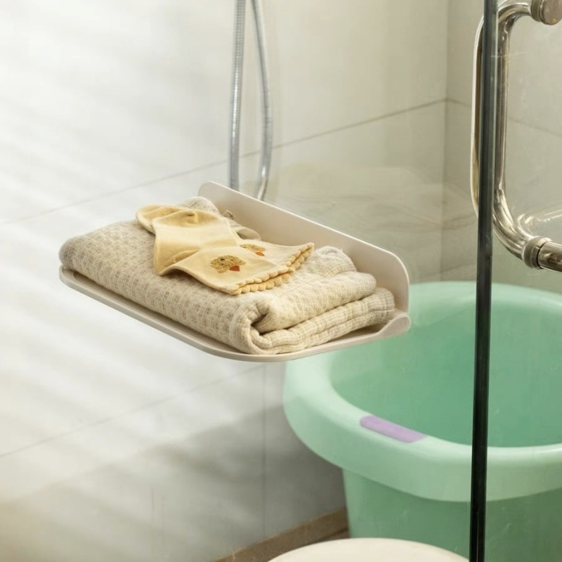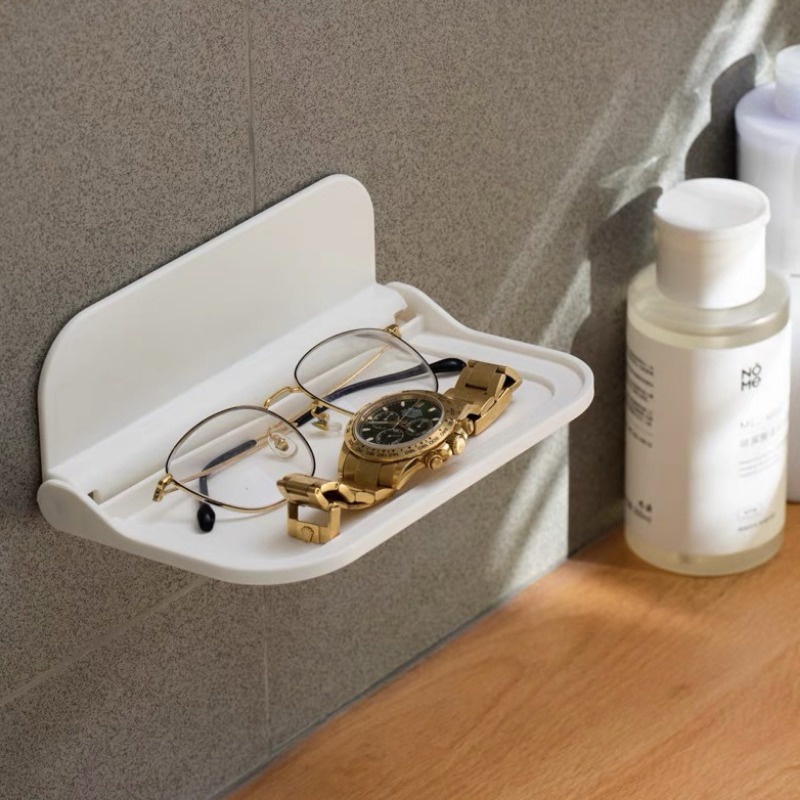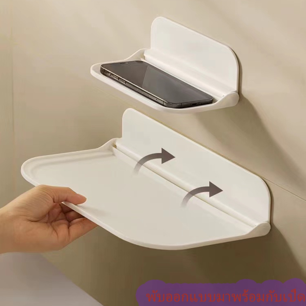 ?️ ชั้นเก็บของพับเก็บได้ ติดผนังห้องน้ำ หอพัก ไม่ต้องเจาะ ชั้นวางโทรศัพท์ อุปกรณ์จัดเก็บห้องน้ำ รับน้ำหนักสูงสุด5kg