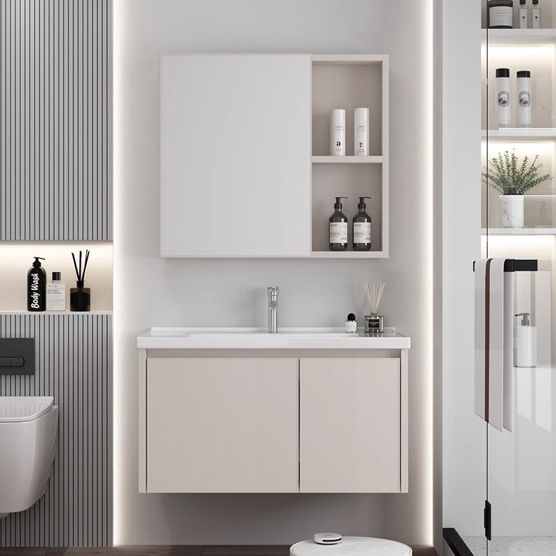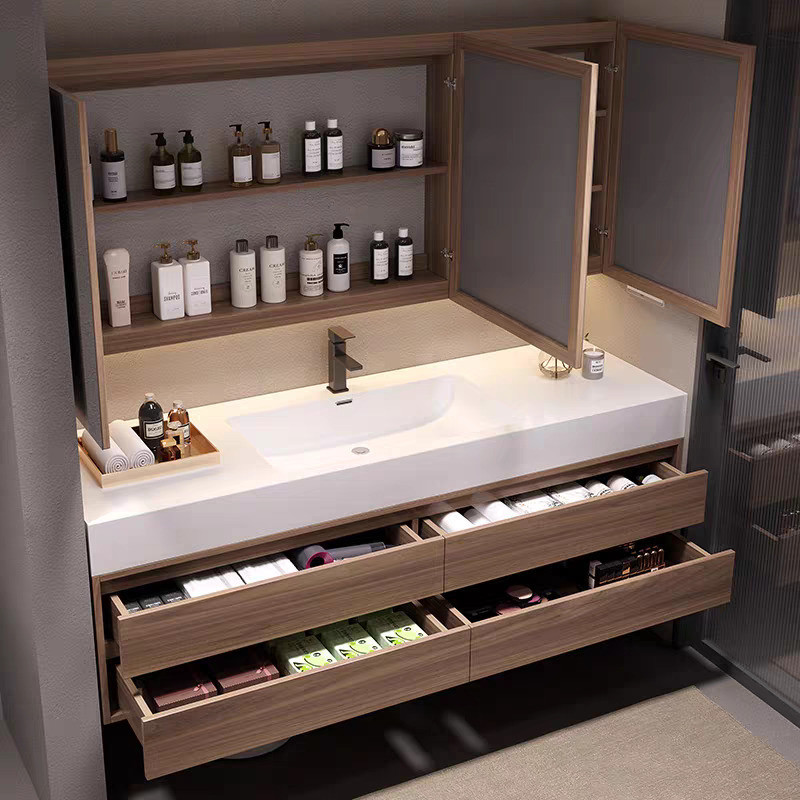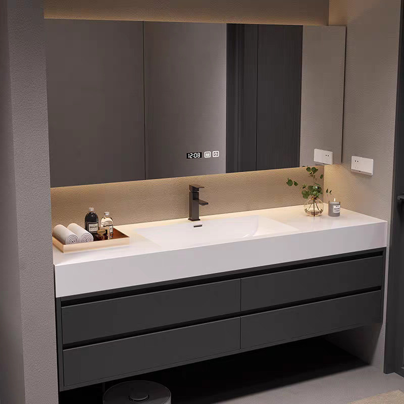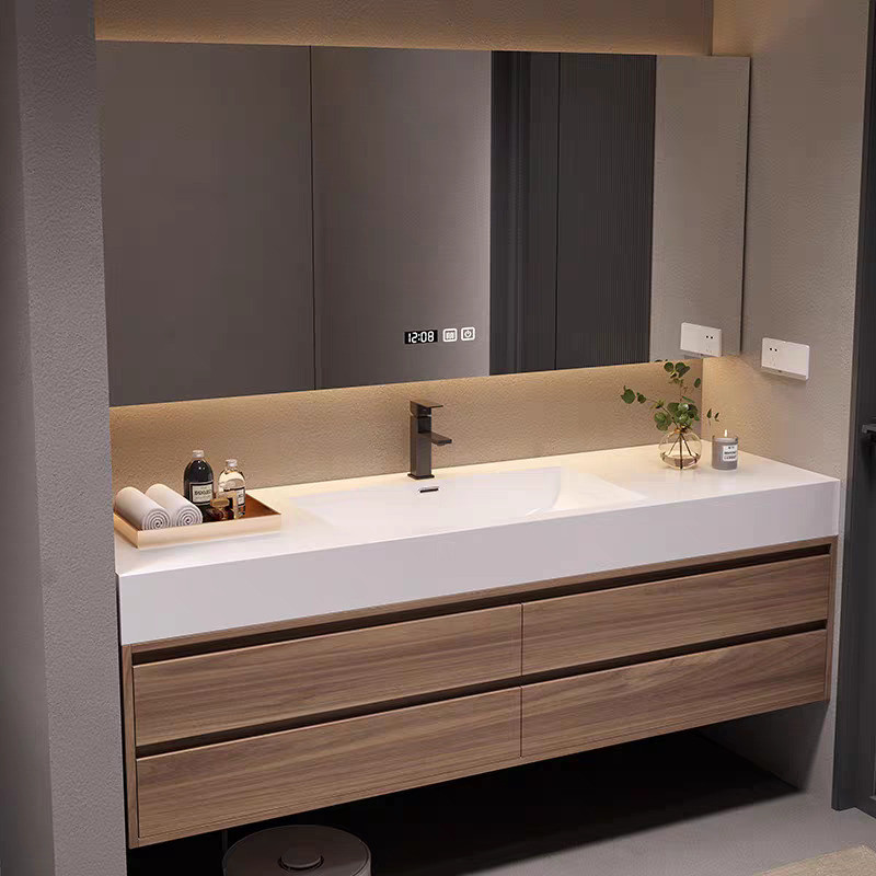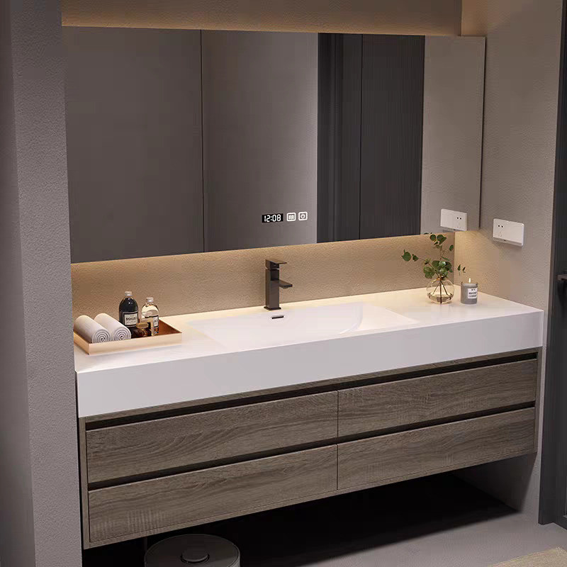 (ที่กําหนดเอง) ชุดตู้เก็บของในห้องน้ําไม้เนื้อแข็งพร้อมกระจกอัจฉริยะและอ่างล้างหน้าในห้องน้ํา