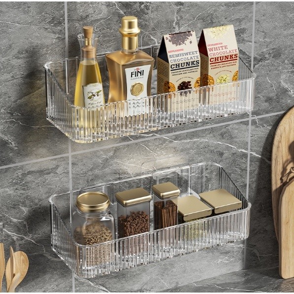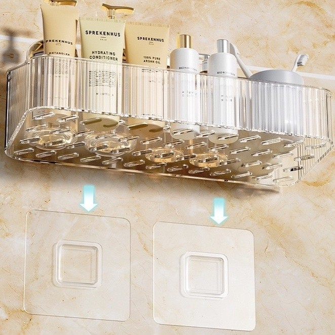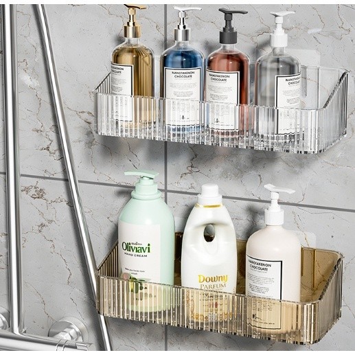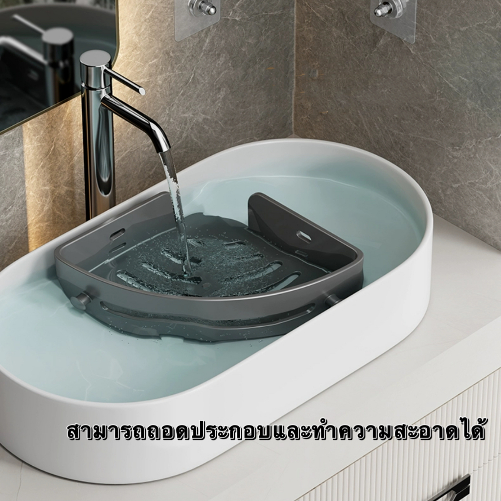 ABS ชั้นวางของในห้องน้ํา ที่วางของเข้ามุมสามเเหลียม ไม่ต้องเจาะผนัง ชั้นวางของในห้องครัว ชั้นวางของติดผนังเข้ามุม