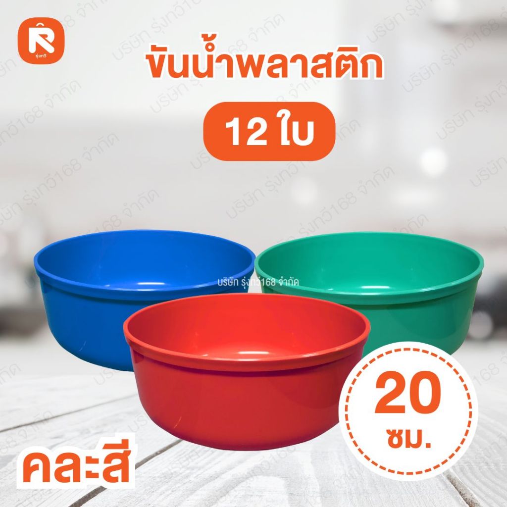 (12ใบ) ❤️ ขันน้ำพลาสติก 20 CM Silver Bell ?หนา เกรด A คละสี plastic water ขันขัน 20ซม.B ?