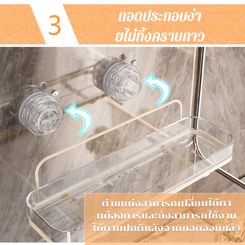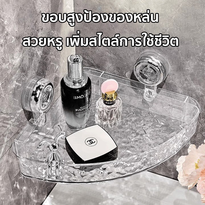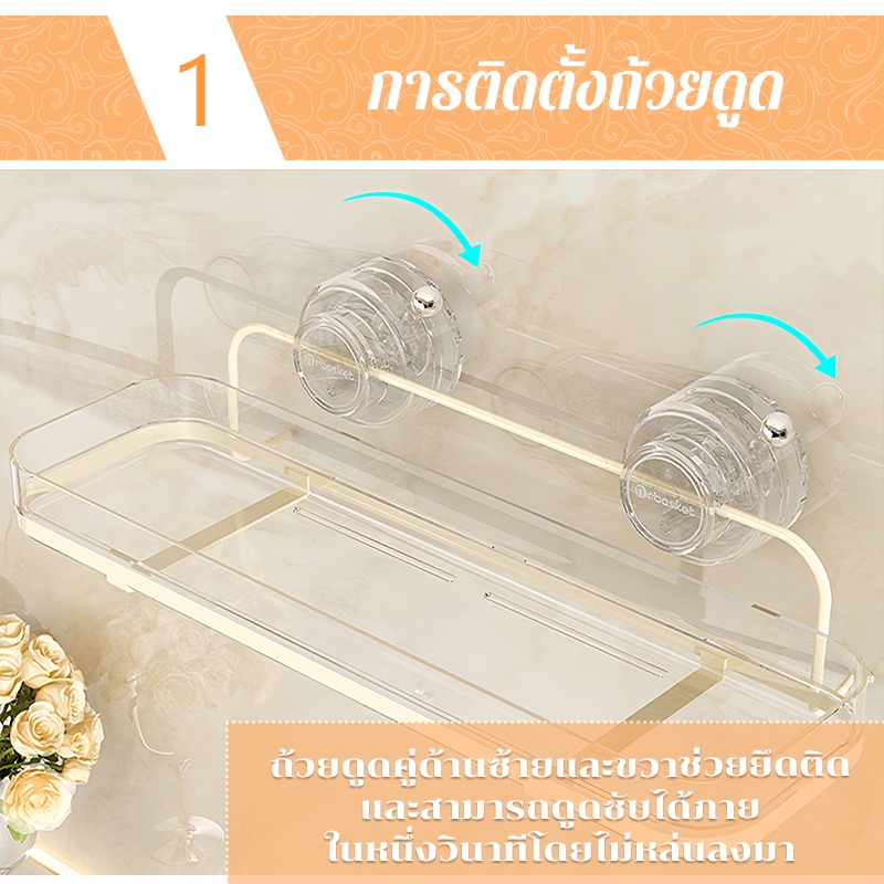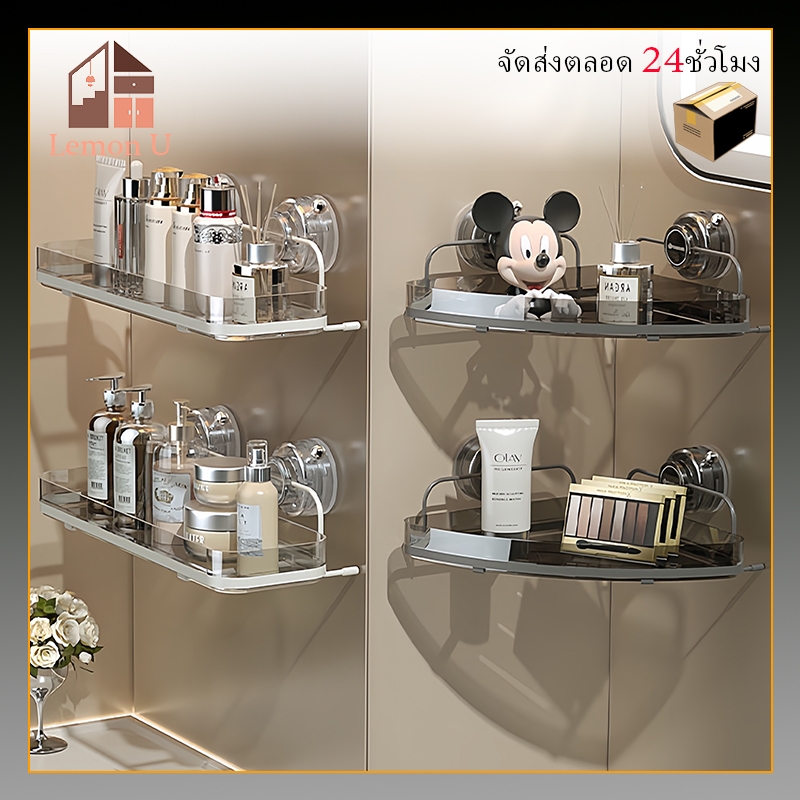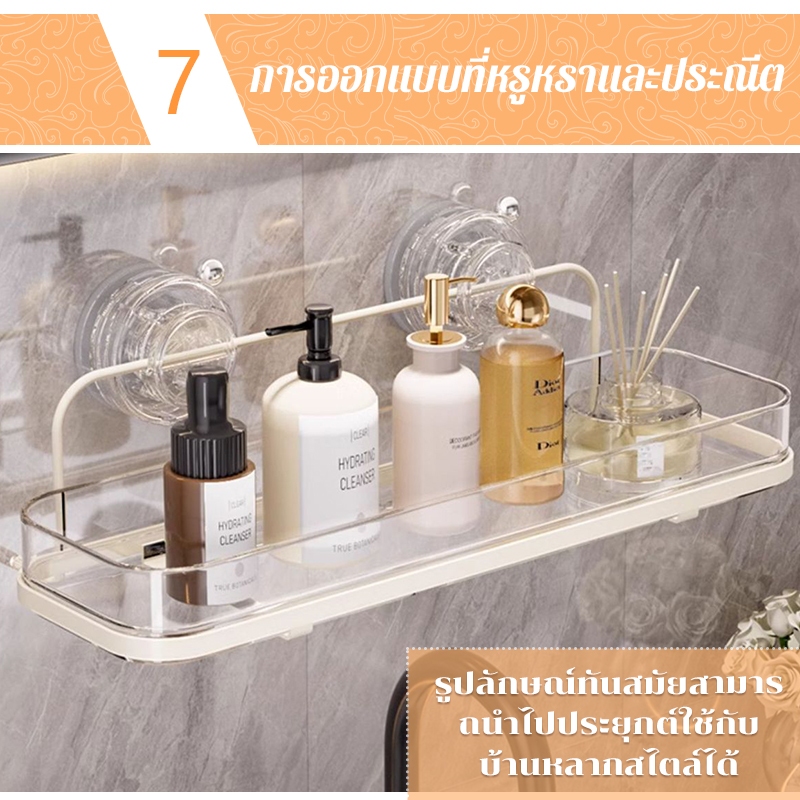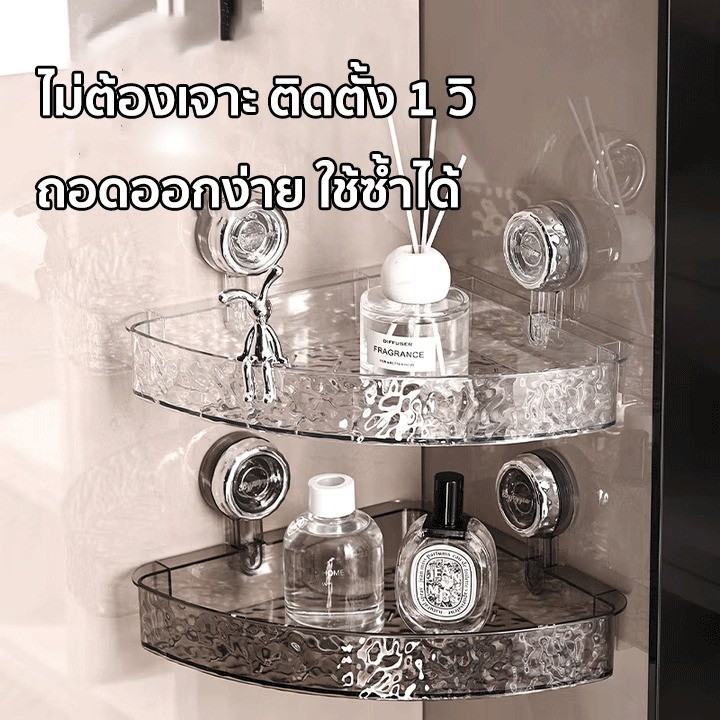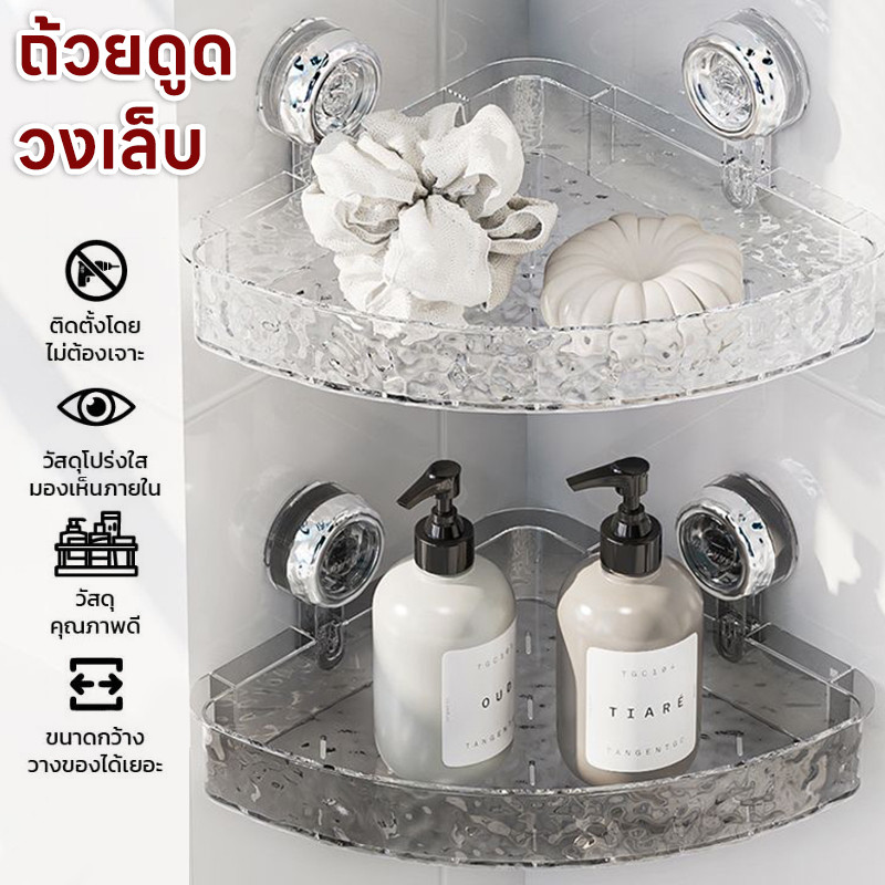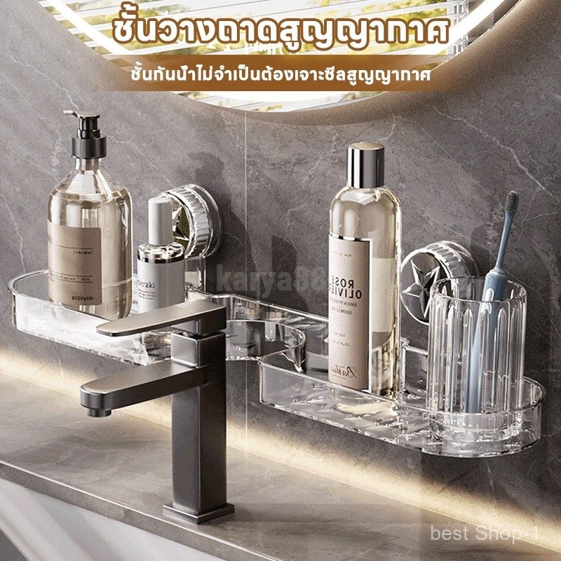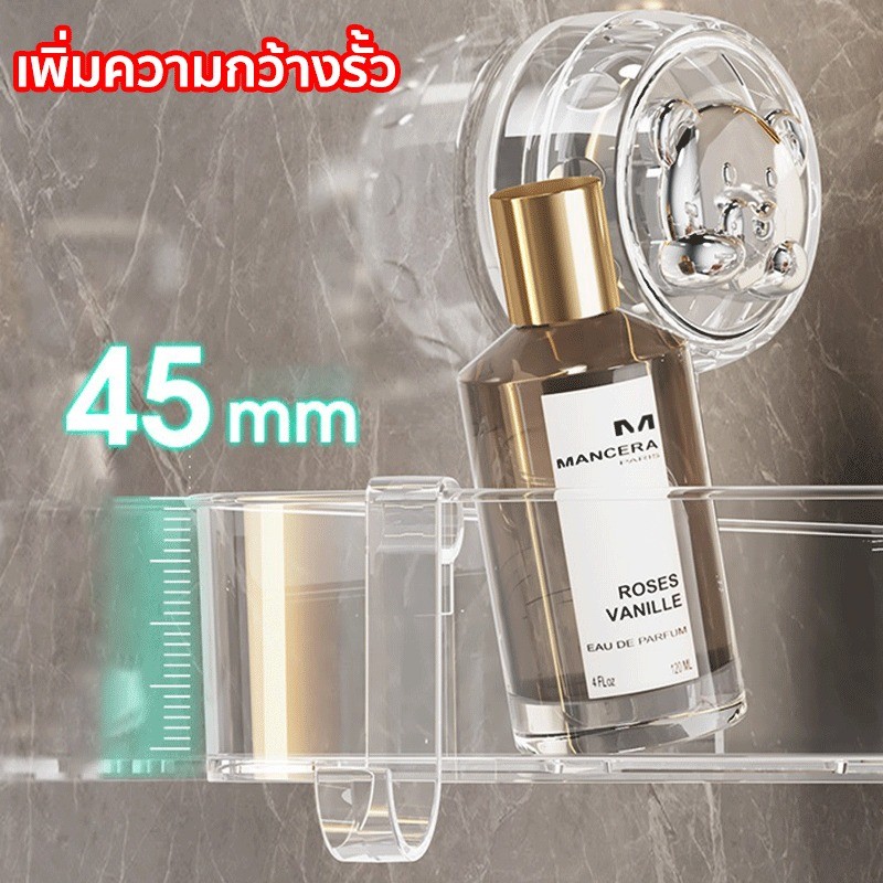 ชั้นวางของในห้องน้ำ ที่วางถ้วยดูด ติดตั้งโดยไม่ต้องเจาะผนัง วัสดุโปร่งใส มองเห็นด้านใน จัดเก็บของได้ง่าย