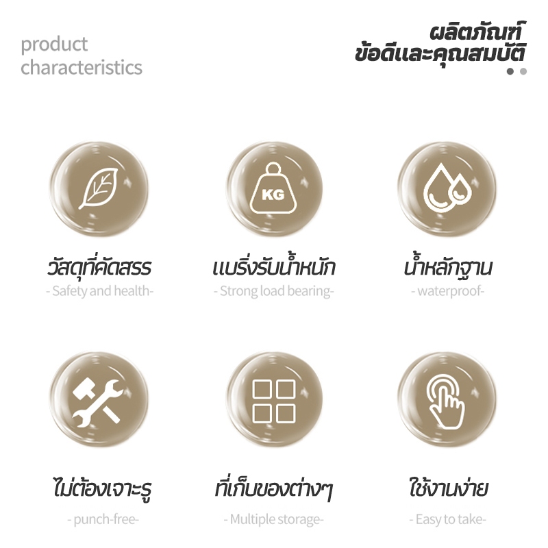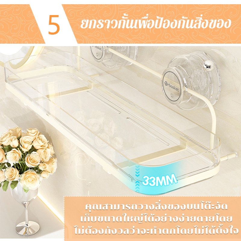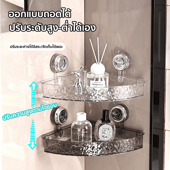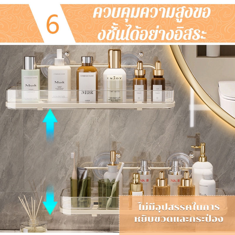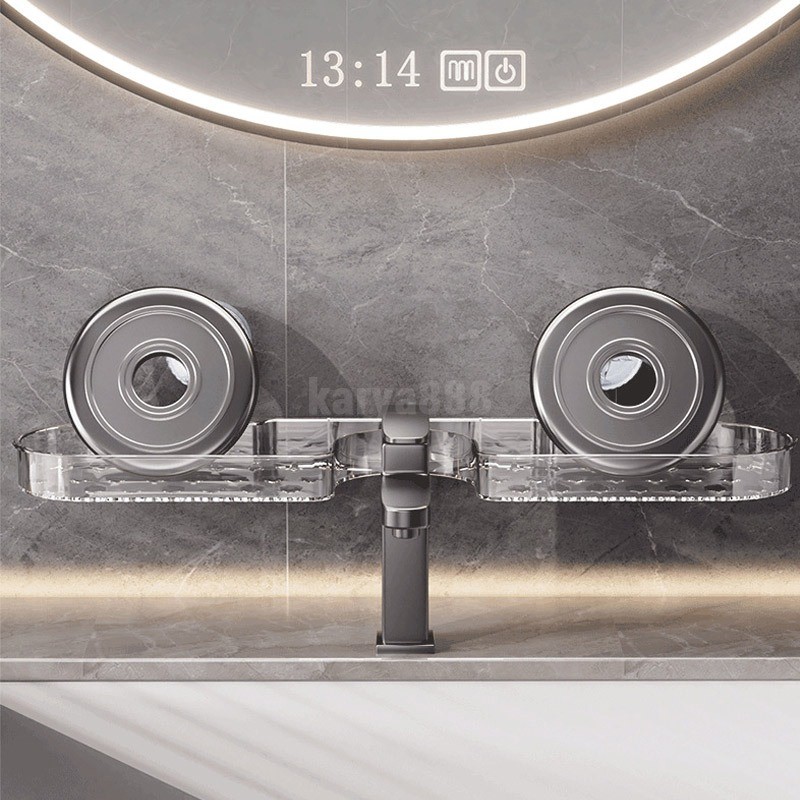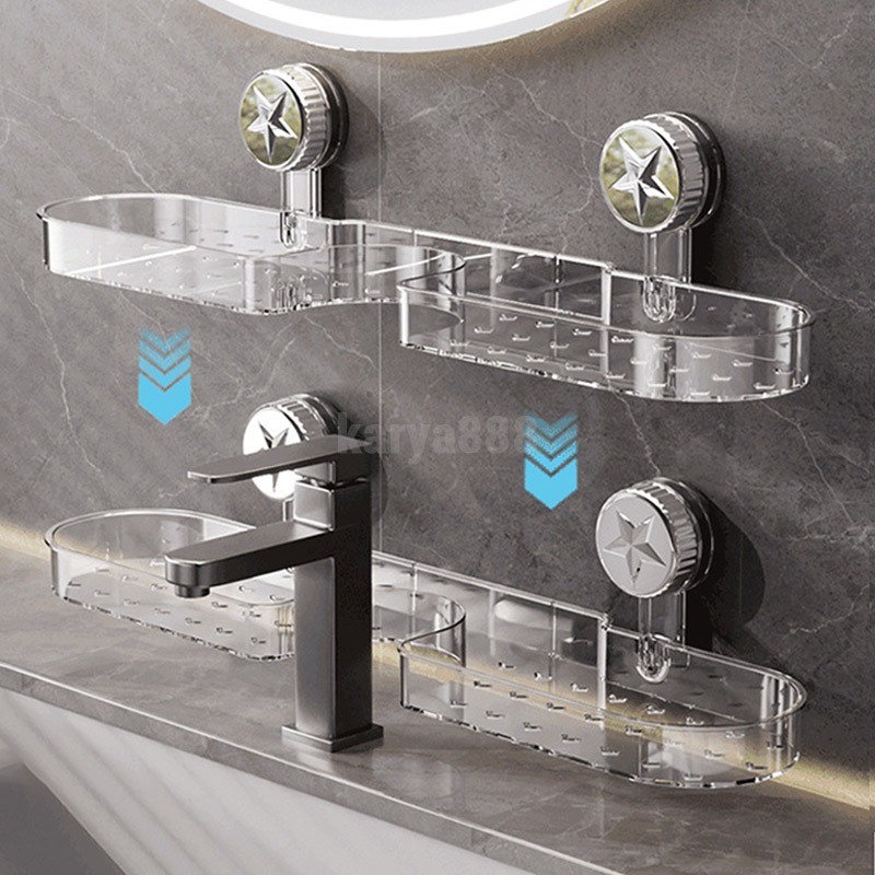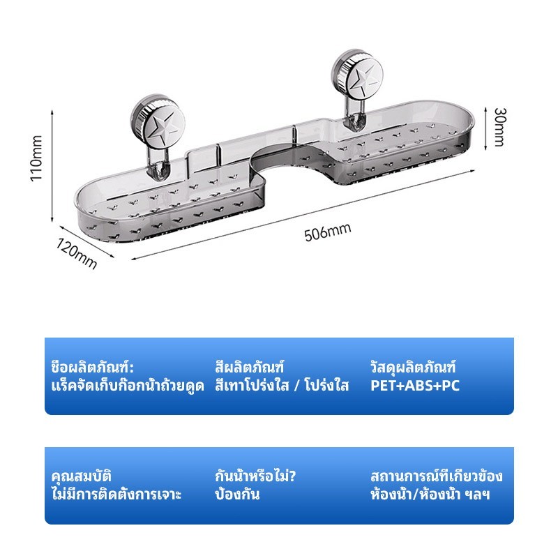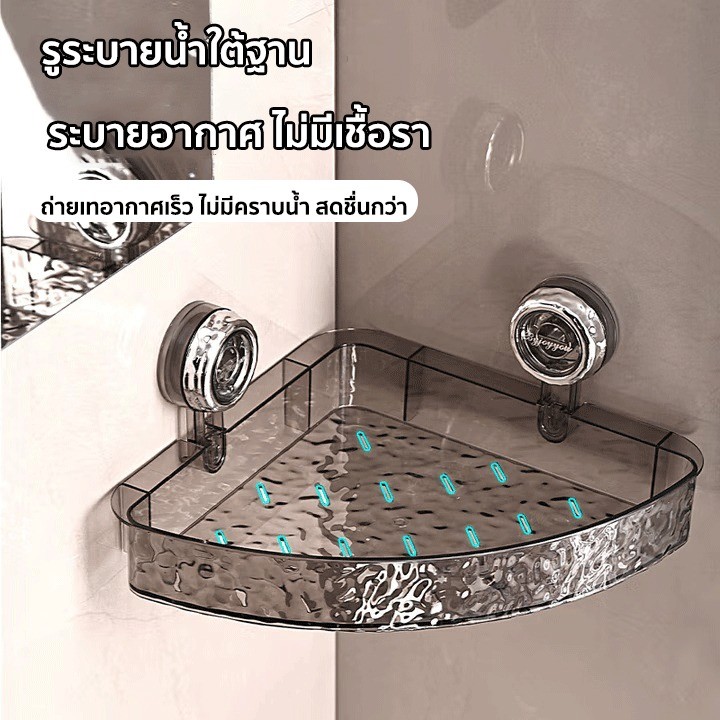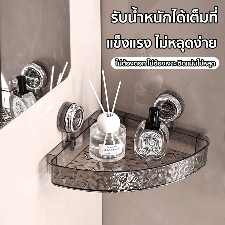 ชั้นวางของในห้องน้ำ ที่วางถ้วยดูด ติดตั้งโดยไม่ต้องเจาะผนัง วัสดุโปร่งใส มองเห็นด้านใน จัดเก็บของได้ง่าย
