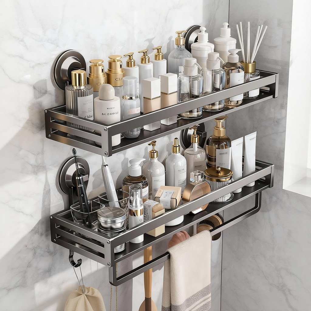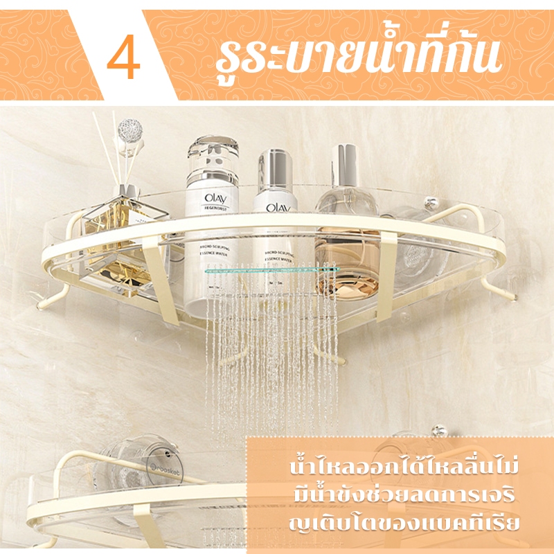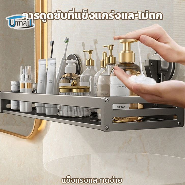 ชั้นวางของในห้องน้ำ ชั้นวางแบบดูด ชั้นวางเจลอาบน้ำ ไม่ต้องใช้กาว การดูดซับด้วยถ้วยดูด
