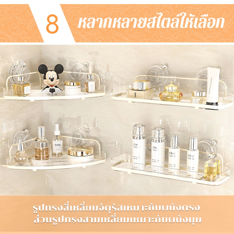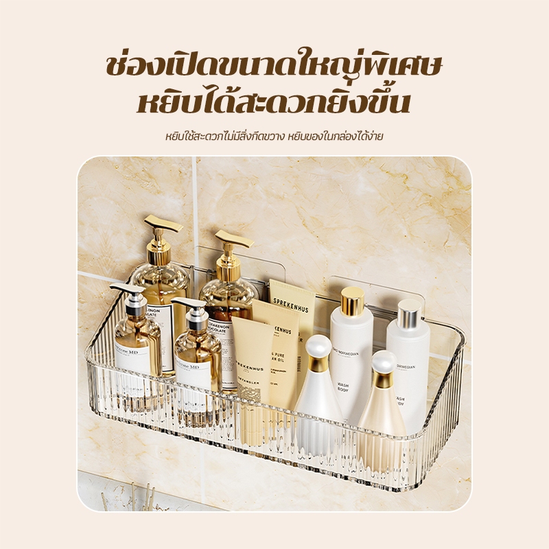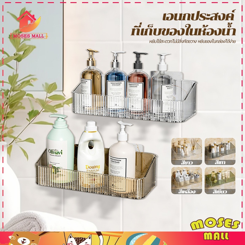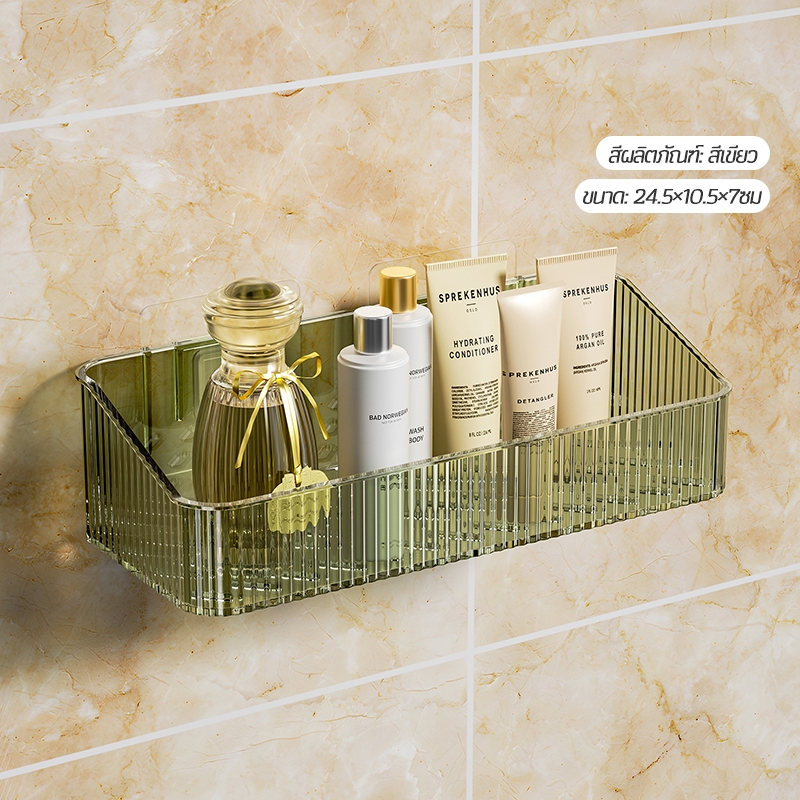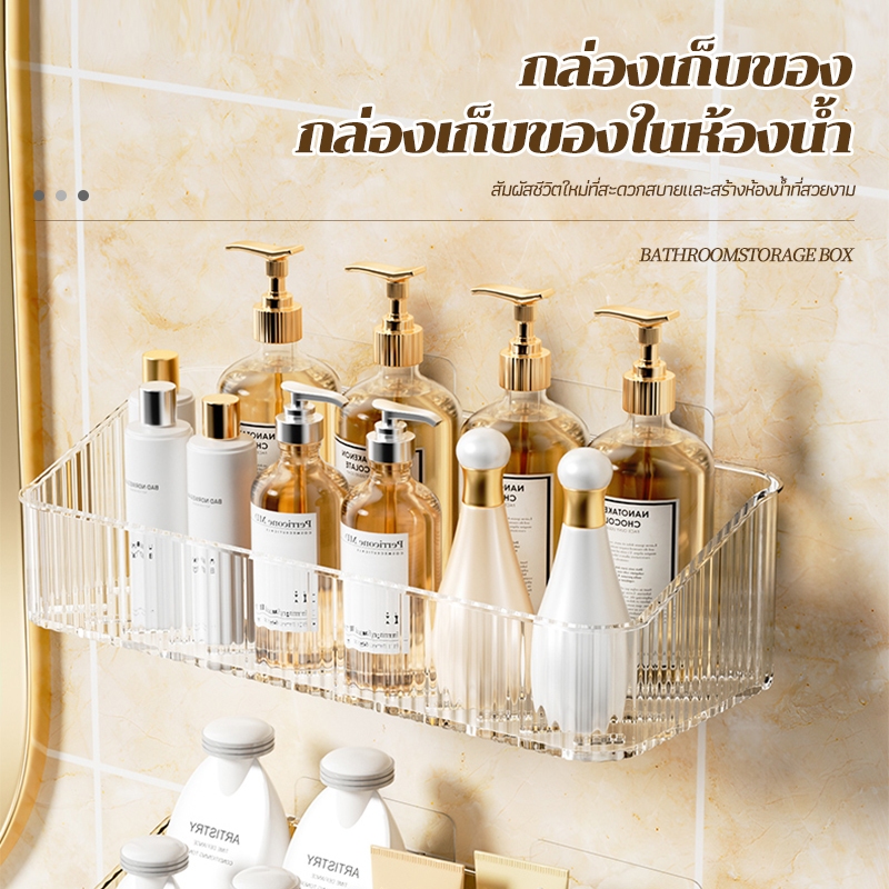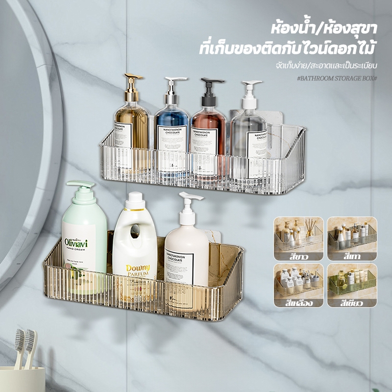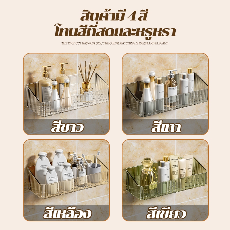 ชั้นวางของในห้องน้ำ ห้องครัว ที่เก็บของ ไม่ต้องเจาะรู ชั้นวางของติดผนัง อเนกประสงค์ แบบใส หรูหรา มีสีใสให้เลือก 4 สี