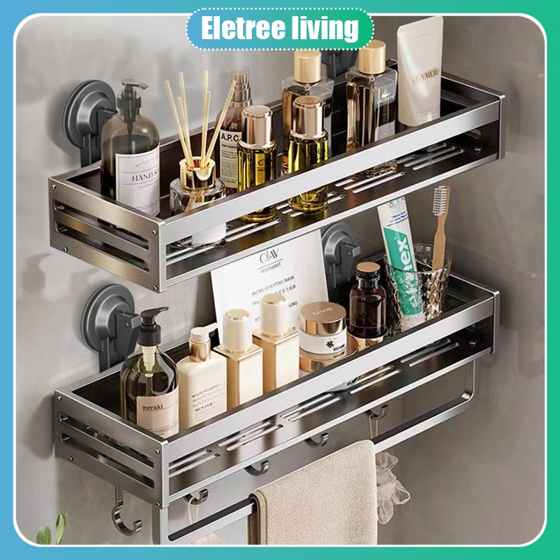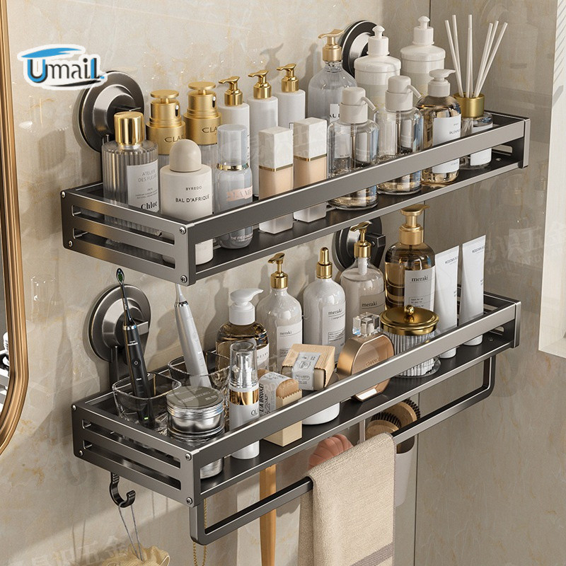 ชั้นวางของในห้องน้ำ ชั้นวางเครื่องสําอาง อลูมิเนียม แบบหนา ชั้นใส่ของแบบถ้วยดูด สไตล์ถ้วยดูด