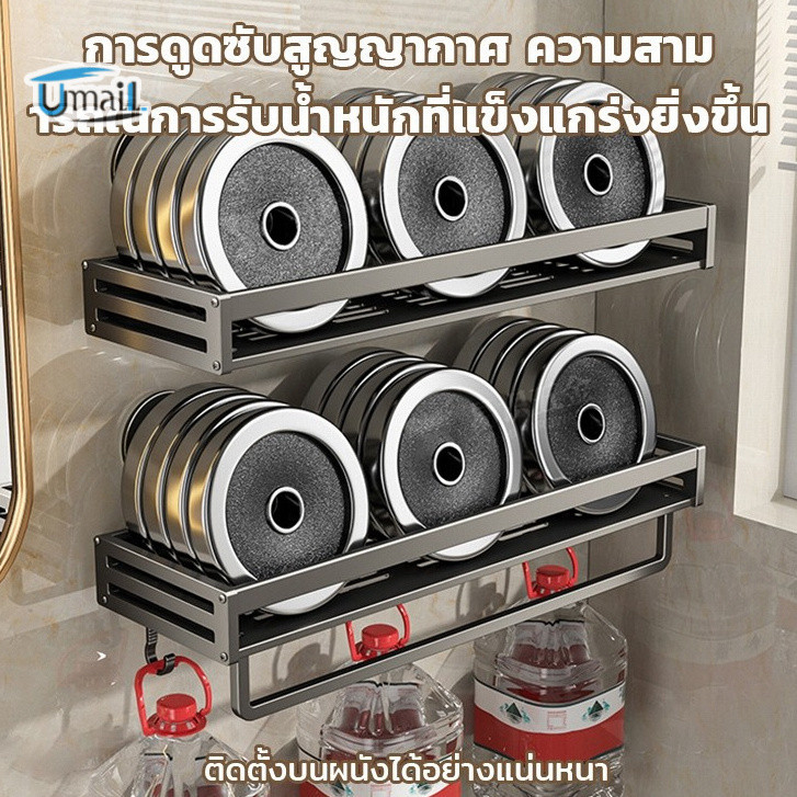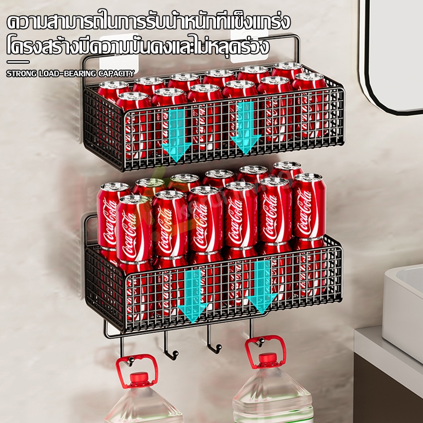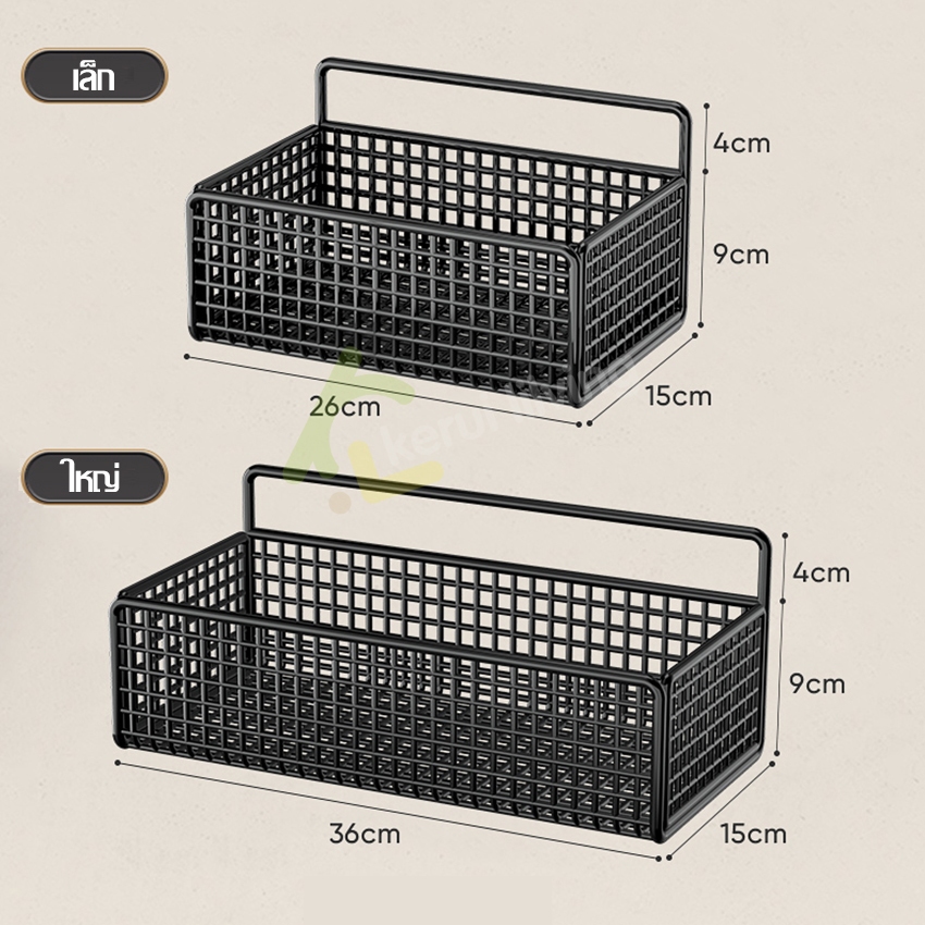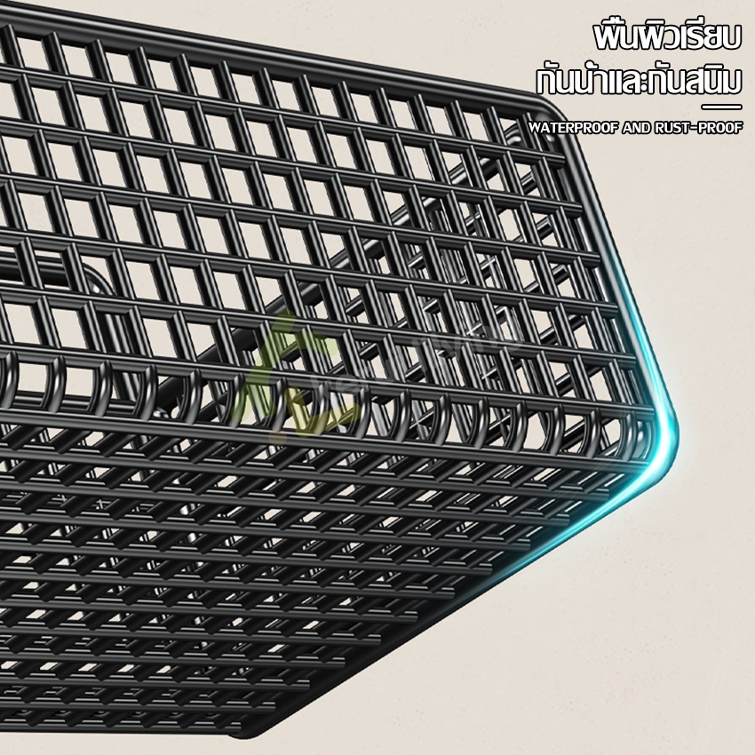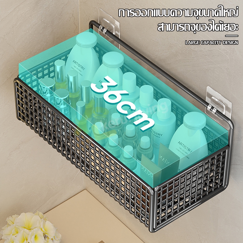 ชั้นวางของในห้องน้ำ ชั้นวางของติดผนัง สีดำ+ตะขอ ที่วางของติดผนัง ตะแกรงวาง ไม่ต้องเจาะผนัง