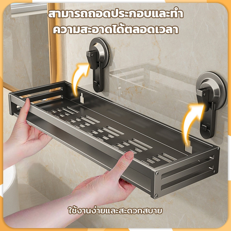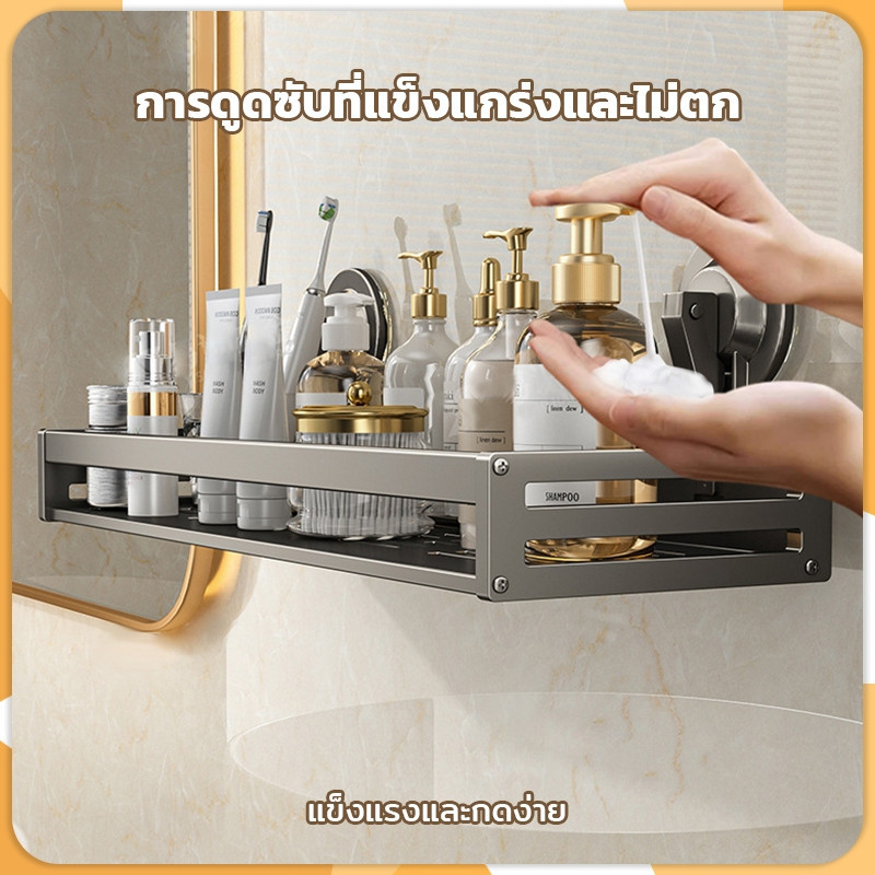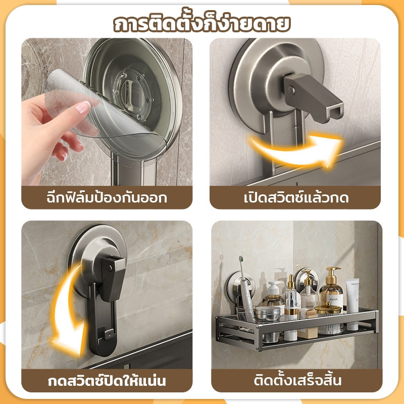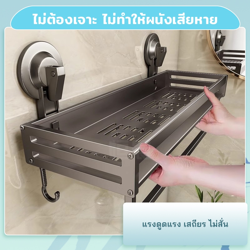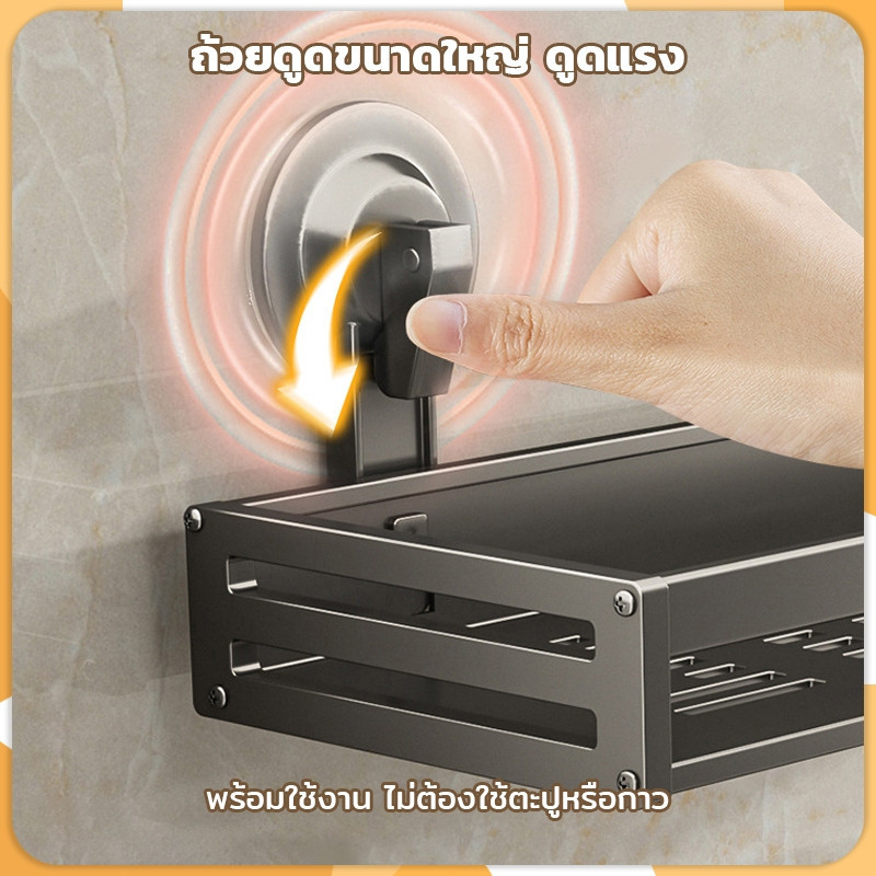 ชั้นวางของในห้องน้ำ ชั้นใส่ของแบบถ้วยดูด ชั้นวางของติดผนัง ไม่ต้องเจาะ ติดตั้ง