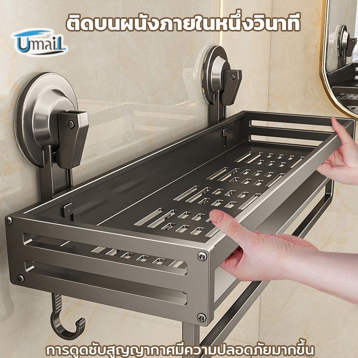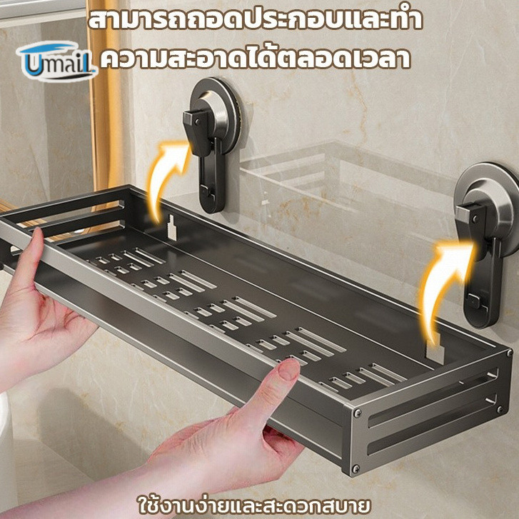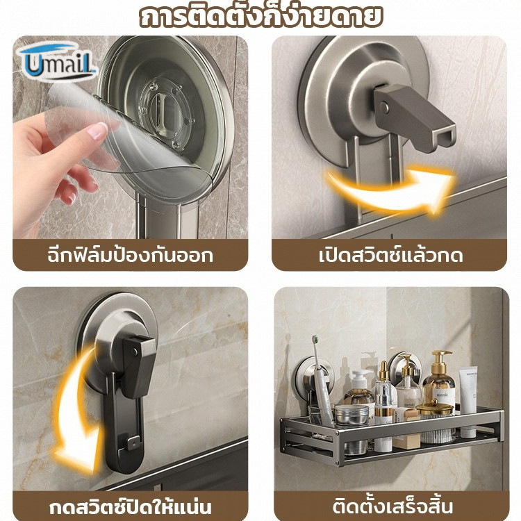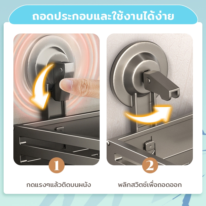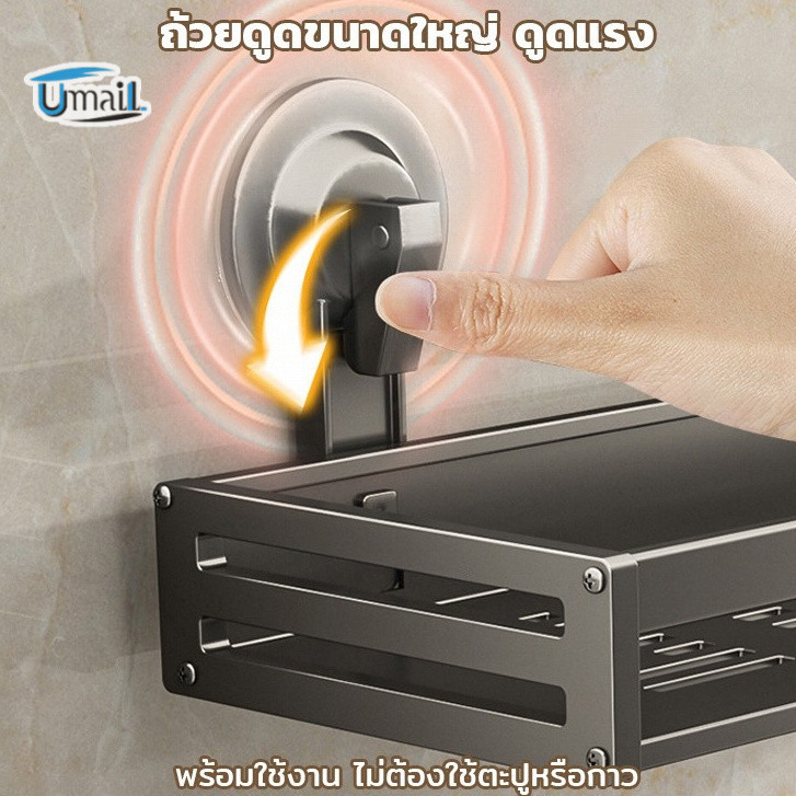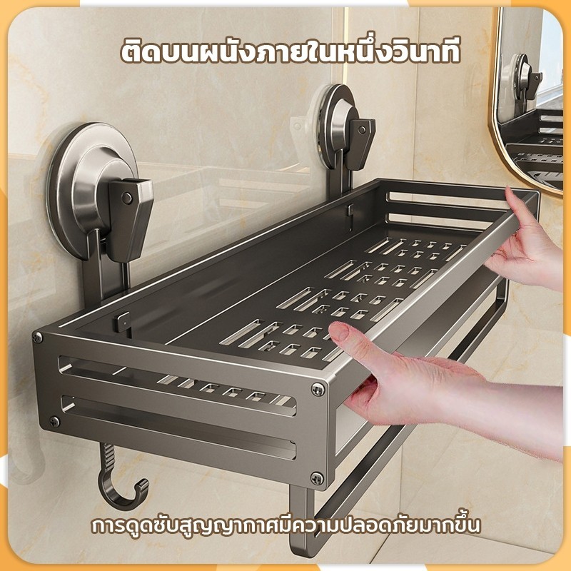 ชั้นวางของในห้องน้ำ ชั้นใส่ของแบบถ้วยดูด ชั้นวางของติดผนัง ไม่ต้องเจาะ ติดตั้ง