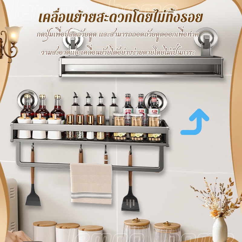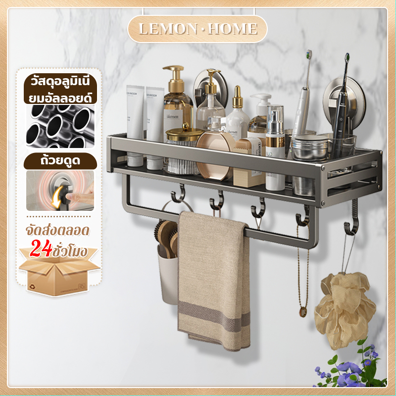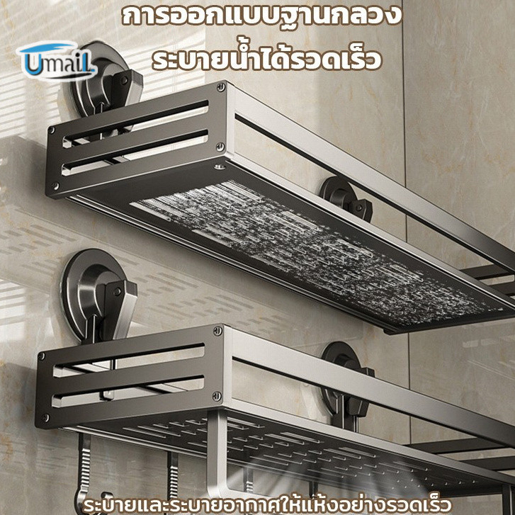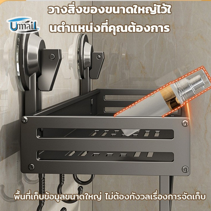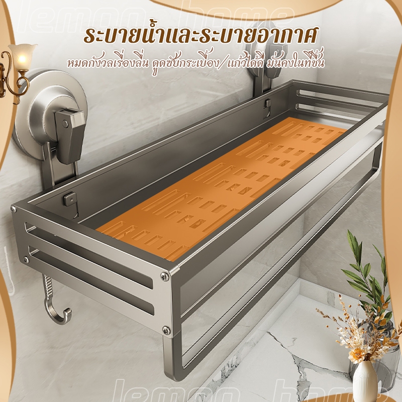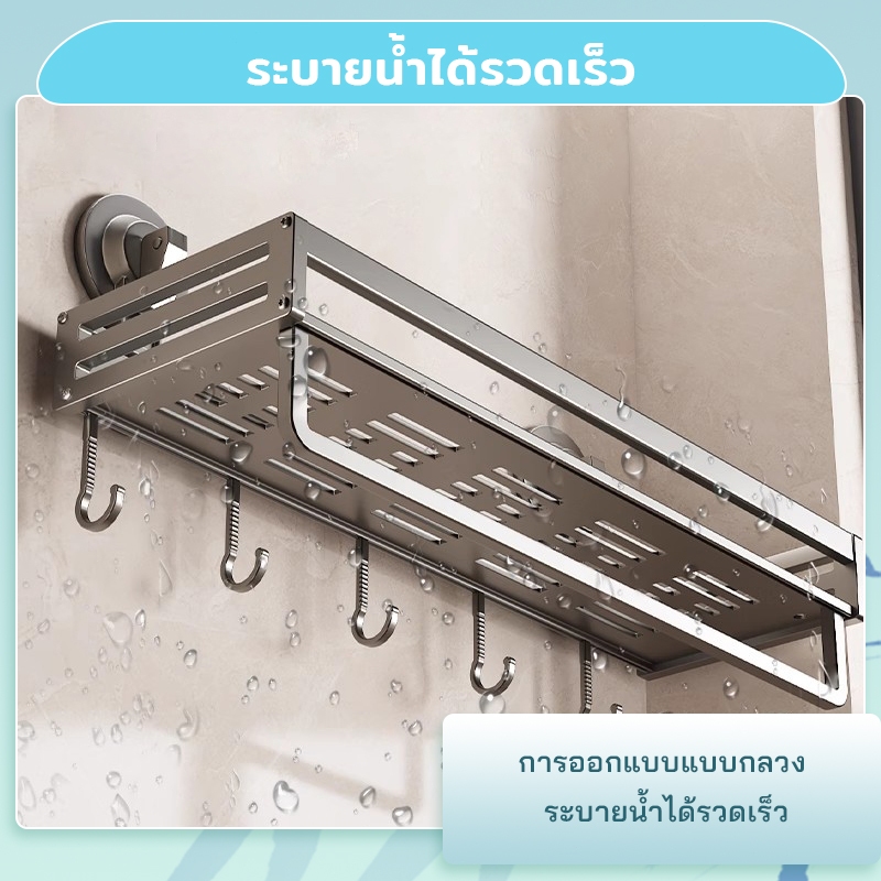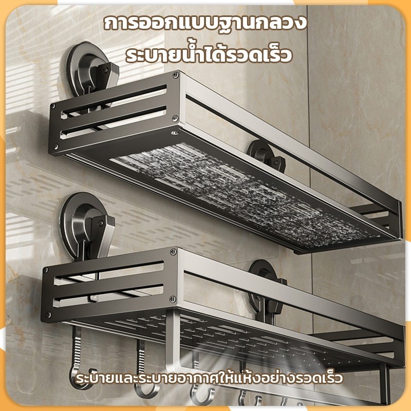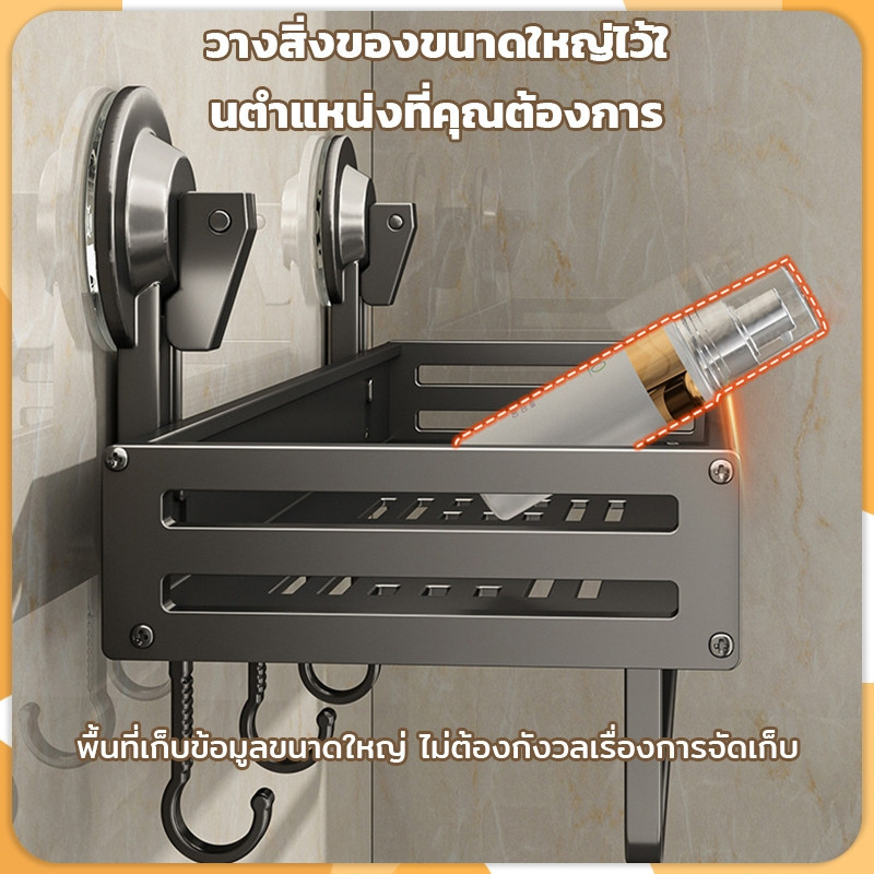 ชั้นวางของในห้องน้ำ แบบถ้วยดูด ไม่ต้องเจาะรู ไม่หลุดง่าย มาพร้อมตะขอที่วางของ ในห้องน้ำ ชั้นวางของติดผนัง