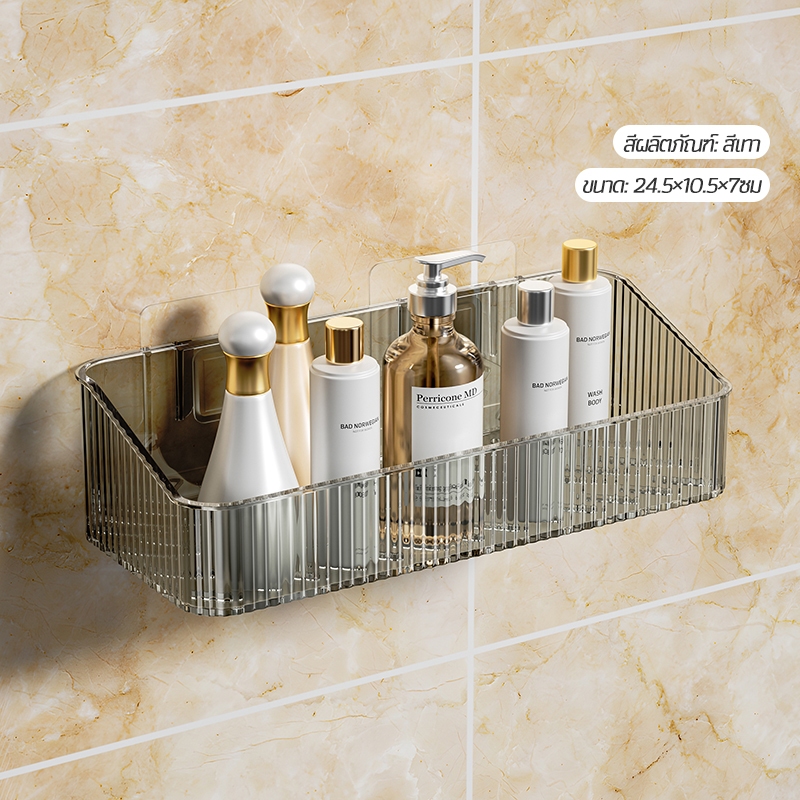 ชั้นวางของในห้องน้ำ ชั้นวางของติดผนัง มุมเก็บของแขวนผนัง ไม่ต้องเจาะ เทา/ใส