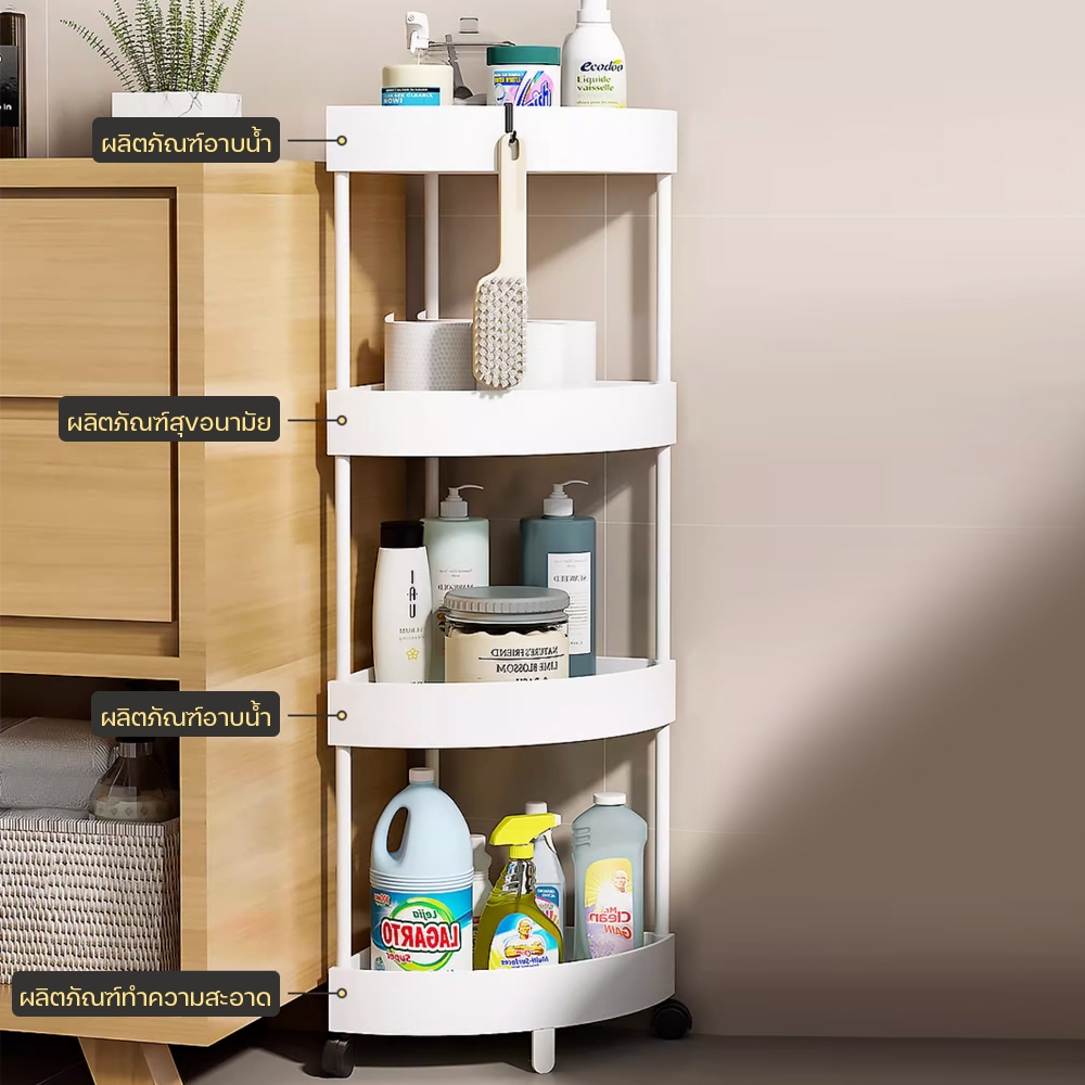 ชั้นวางของในห้องน้ำ ชั้นวางของเข้ามุม ชั้นวางในห้องน้ำ 3/4/5ชั้น มีล้อเลื่อนเคลื่อนย้ายได้คุณภาพ สามารถวางมุมห้องน้ำ