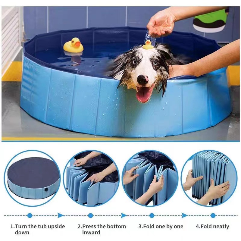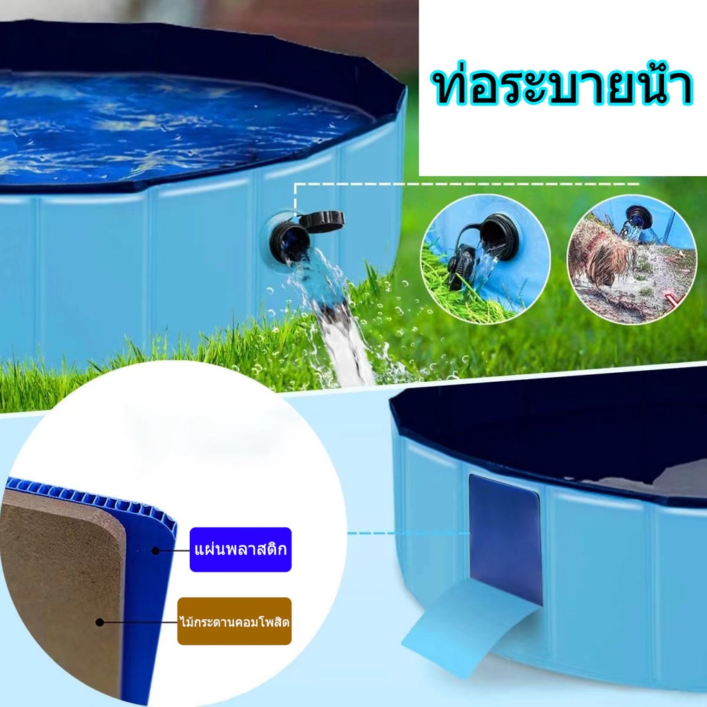 สระว่ายน้ำสัตว์เลี้ยง สระน้ำสุนัข บ่อเอนกประสงค์ พับได้ ไม่ต้องเป่าลม หนาพิเศษ วัสดุPVC จัดเก็บง่าย พกพาสะดวก