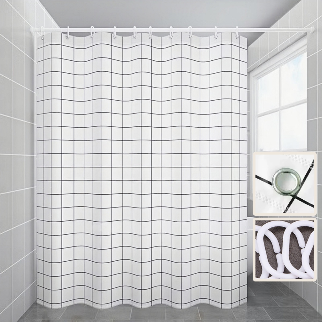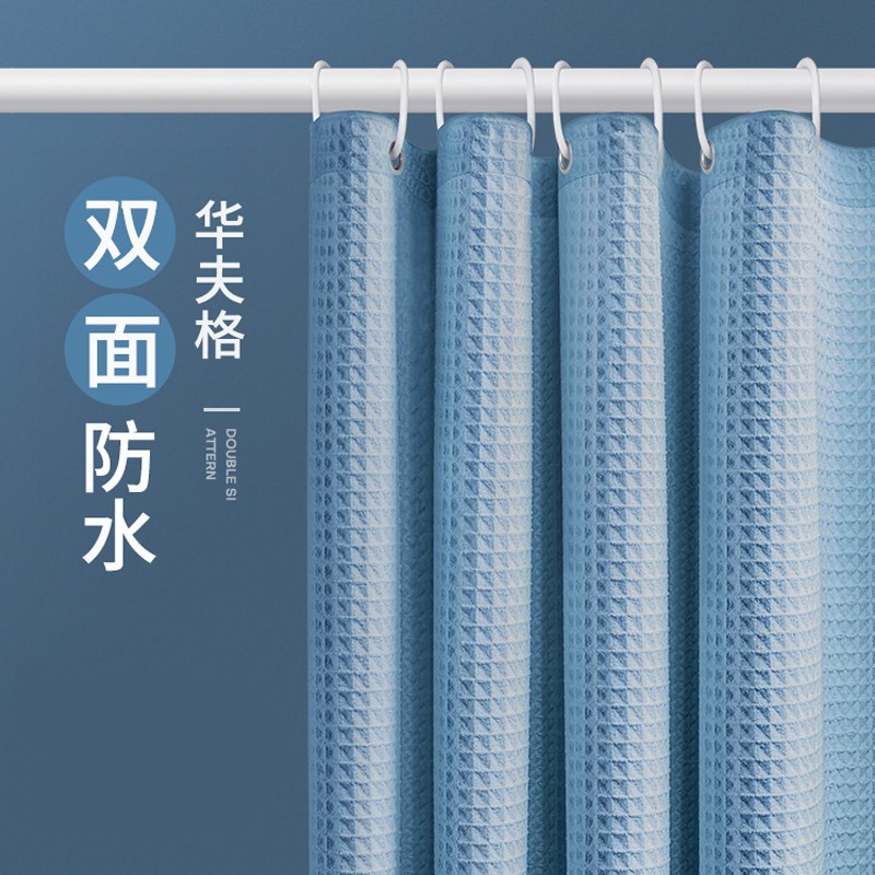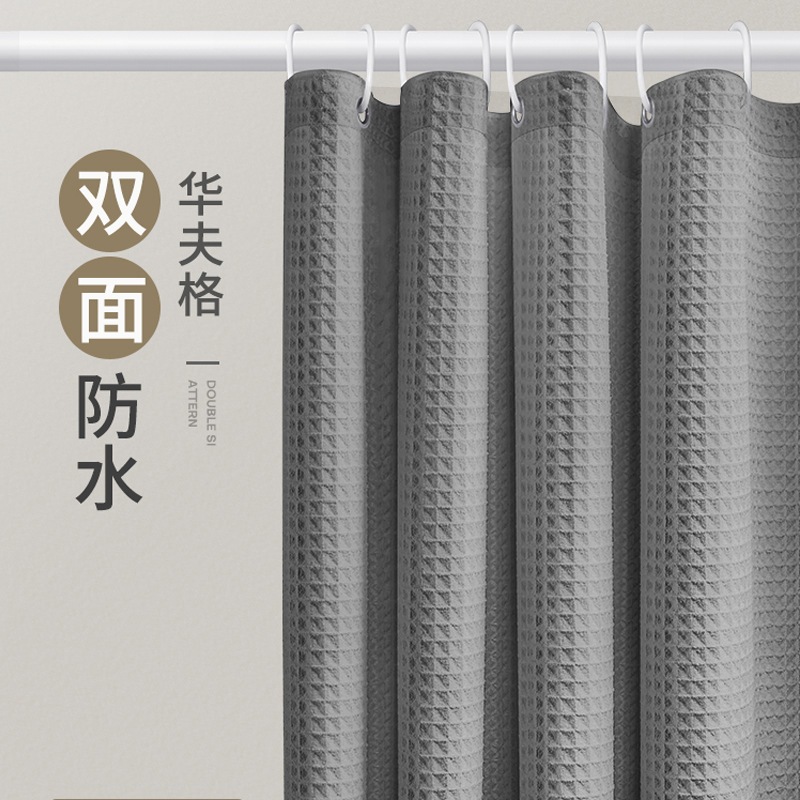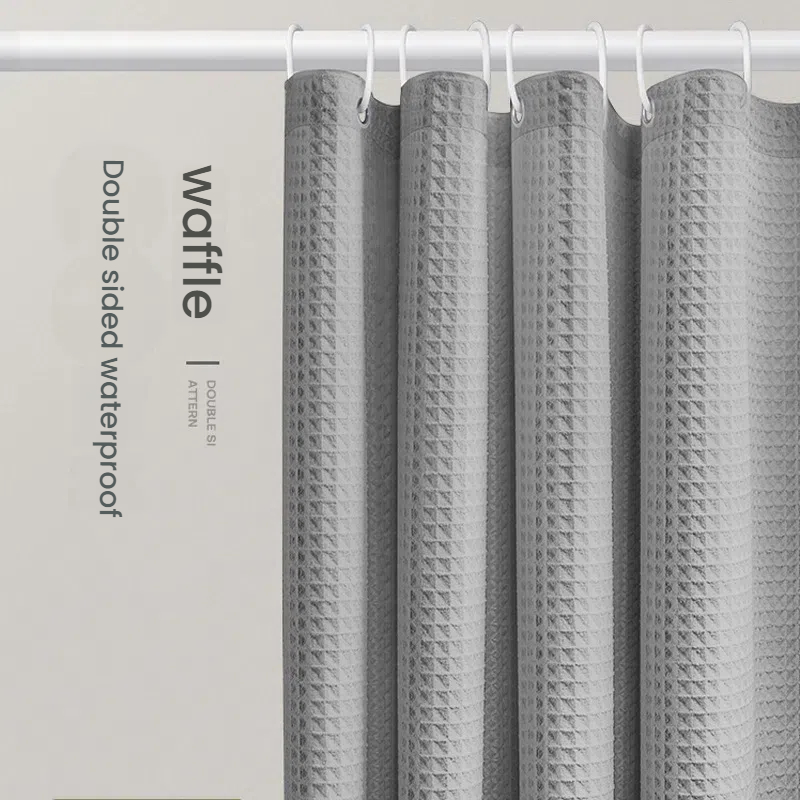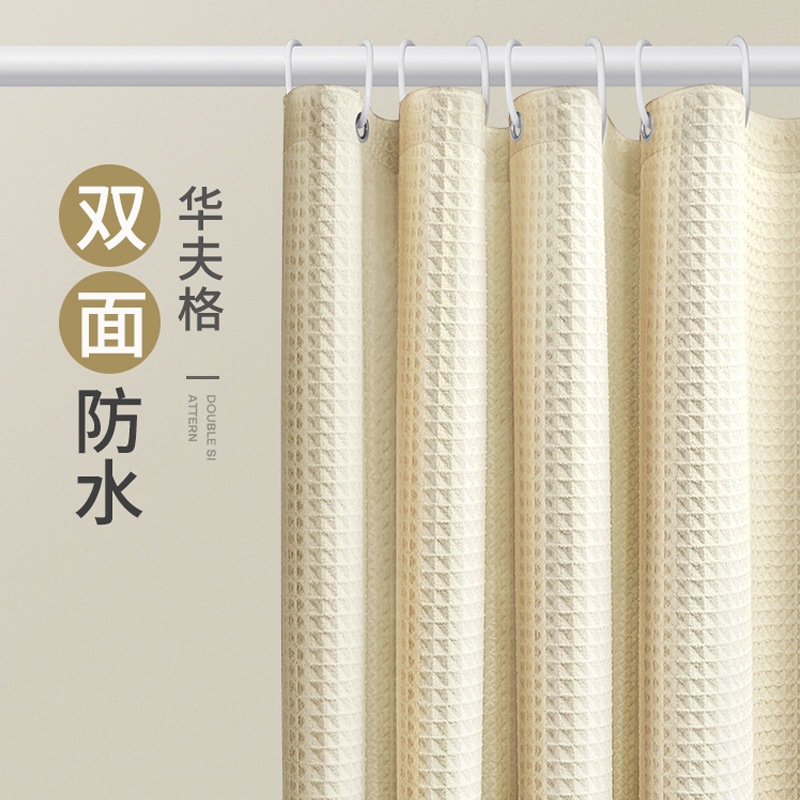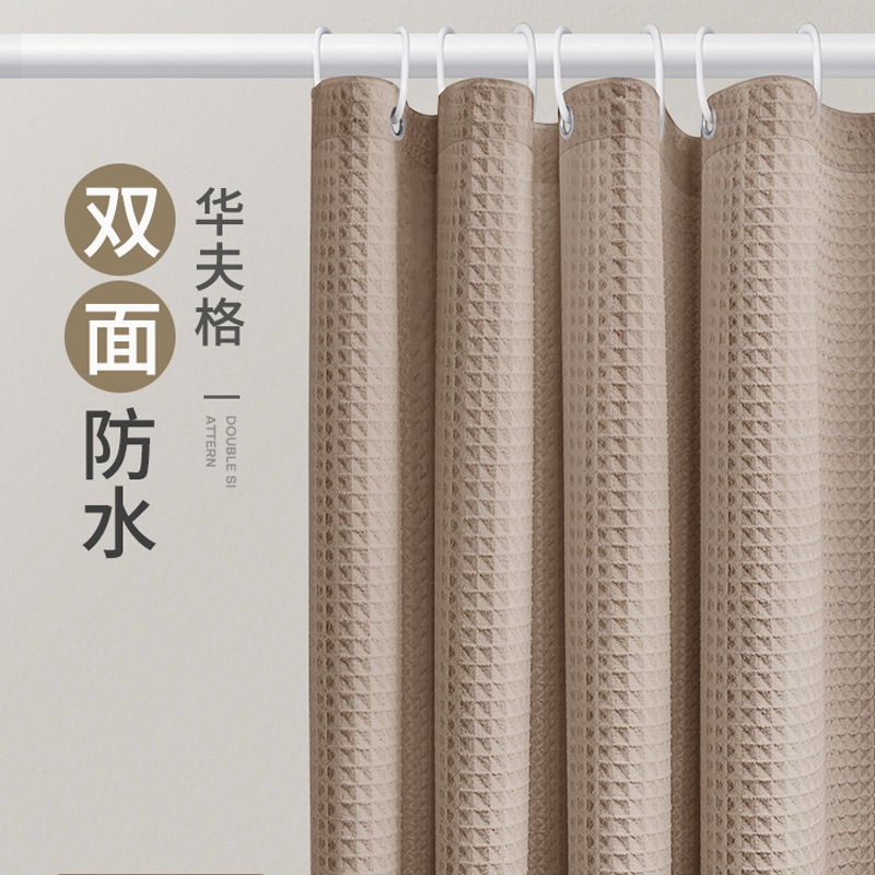ม่านอาบน้ำกันน้ำคุณภาพสูงสำหรับห้องน้ำโรงแรม ขนาด 120(กว้าง)X180(สูง)ซม. สีดำ ขาว เทา น้ำเงิน เบจ น้ำตาล และกากี ม่านอาบน้ำกันน้ำแบบวาฟเฟิลแจ็คการ์ดหนา + ตะขอ 12 อัน
