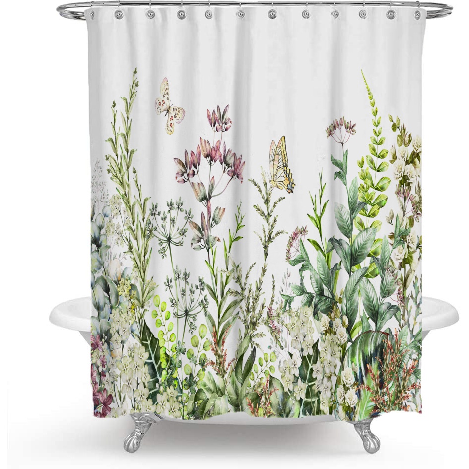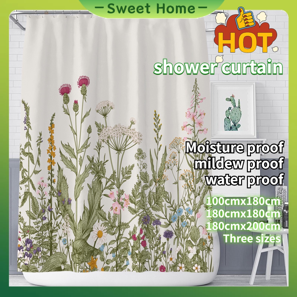 ผ้าม่านกั้นห้องอาบน้ํา โพลีเอสเตอร์ กันน้ํา กันความชื้น ลายดอกไม้ พืช @-