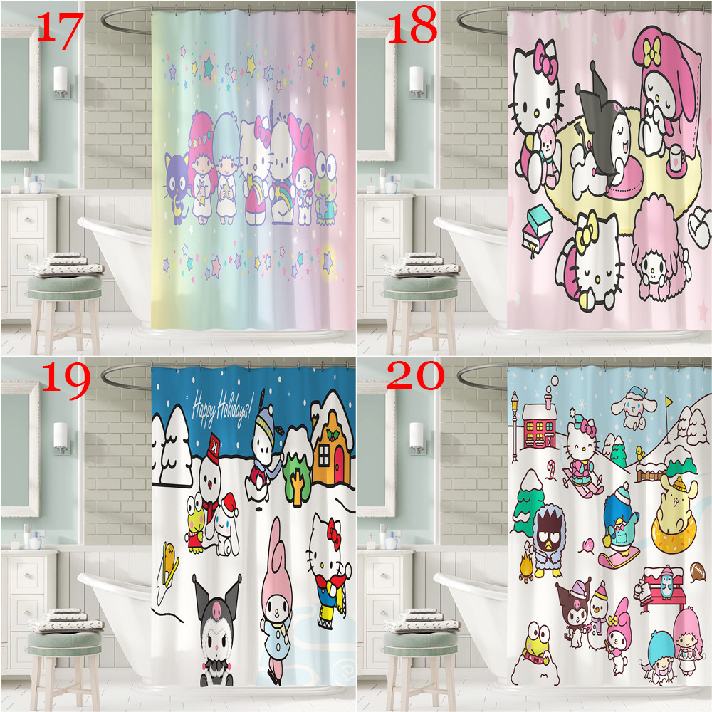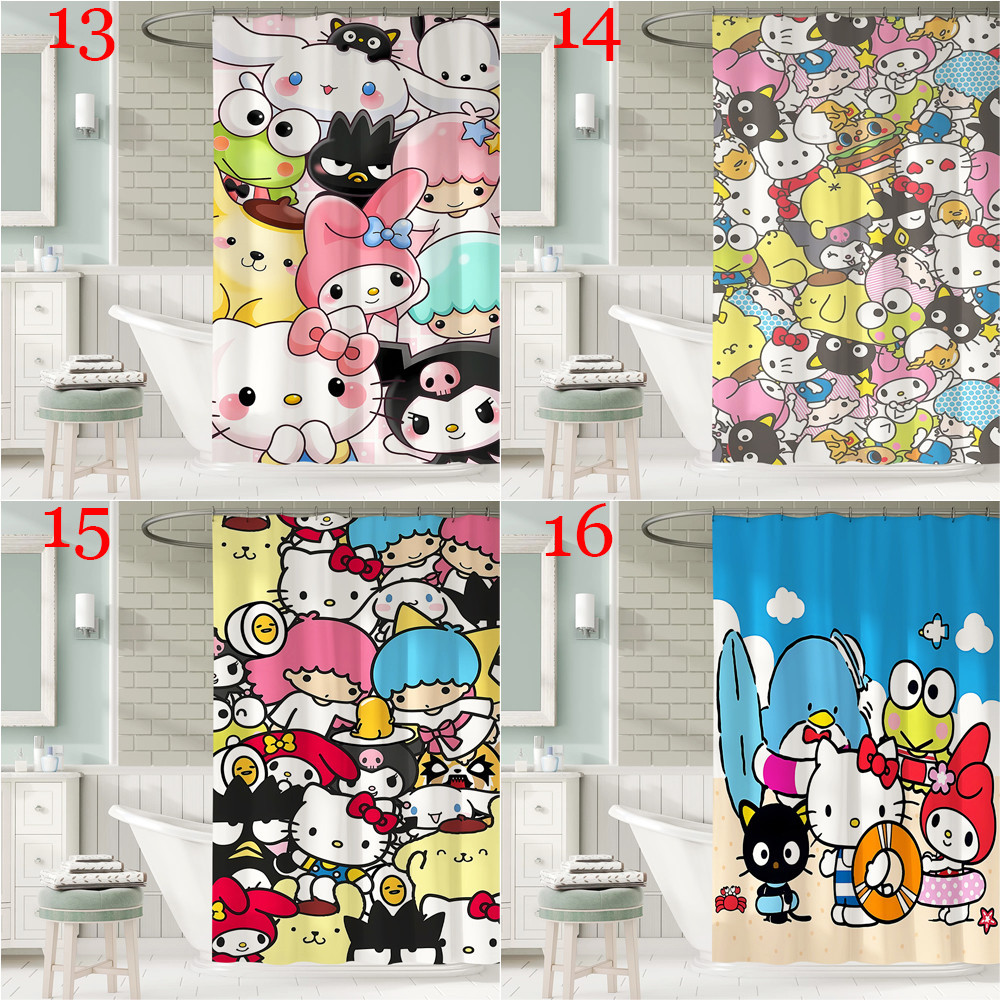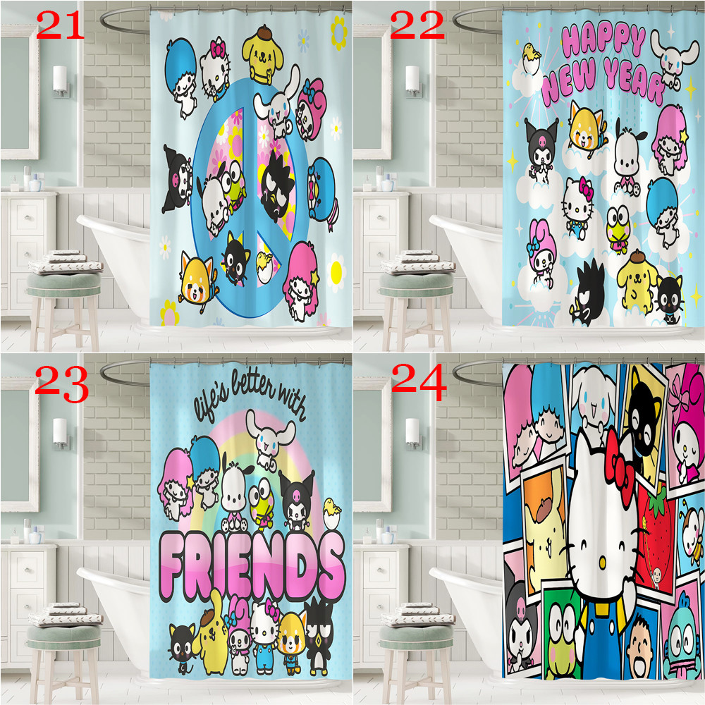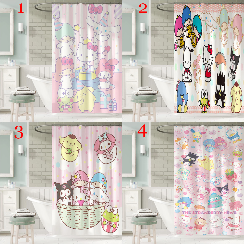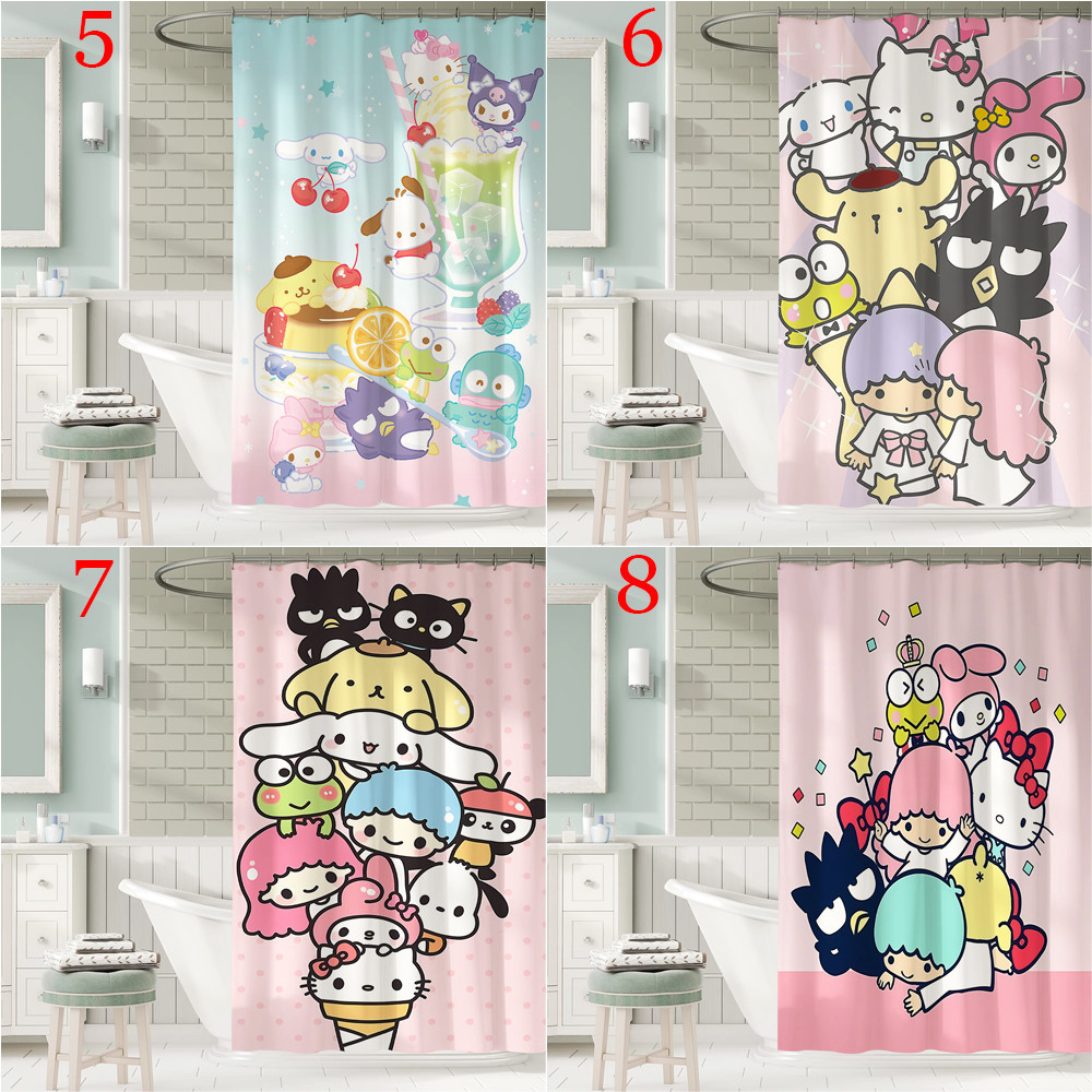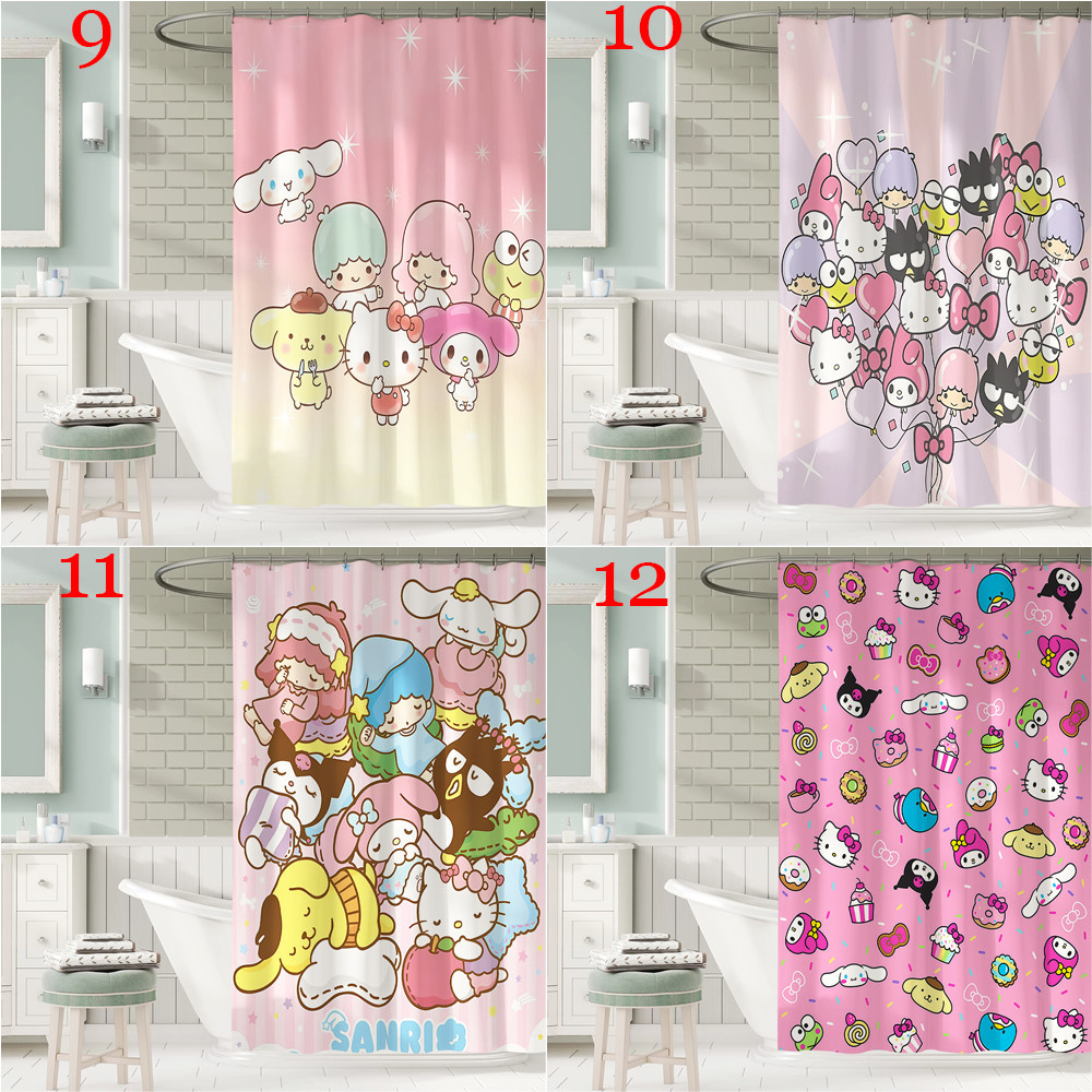ผ้าม่านอาบน้ํา ผ้าโพลีเอสเตอร์ กันน้ํา ลายการ์ตูน Sanrio Family พร้อมตะขอ 12 ตะขอ สําหรับตกแต่งห้องน้ํา