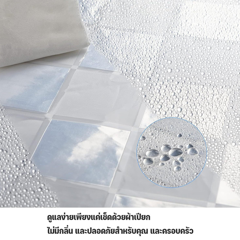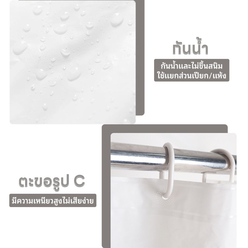 ม่านห้องน้ำ ม่านกันน้ำ ม่านพลาสติกPEVA ขนาด180×180ซม. ฟรีตะขอ C-Hook