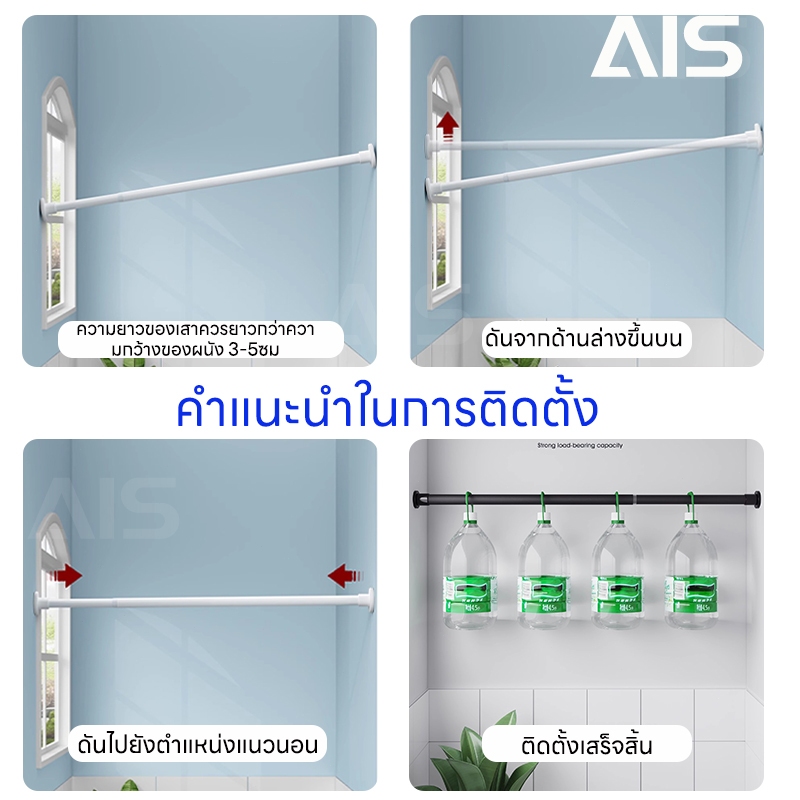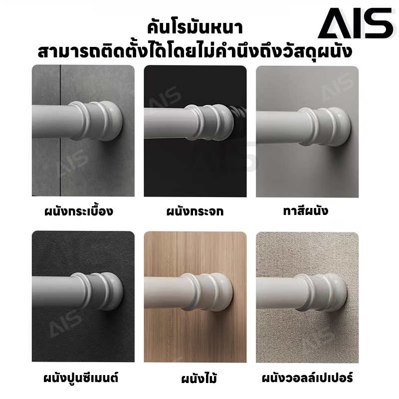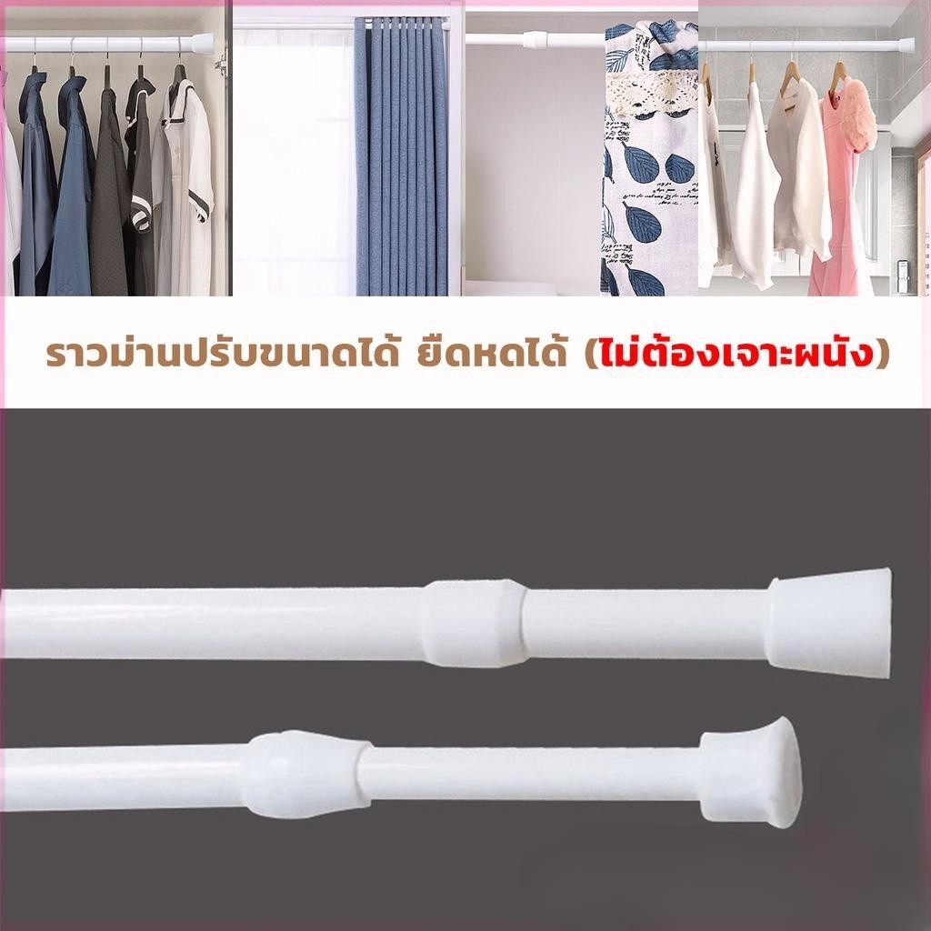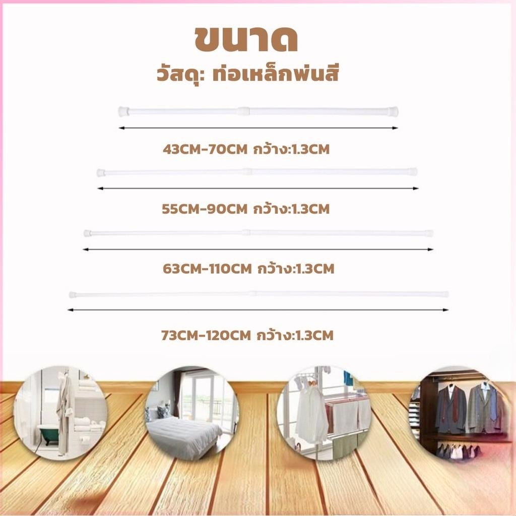 ราวผ้าม่าน ปรับระดับยืดหดได้ แขวนม่านอาบน้ำ Tension Rod Curtain Shower Adjustable Rod Spring