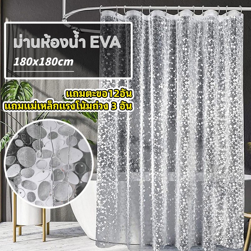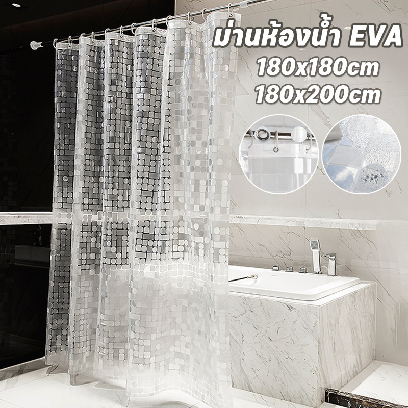ม่านห้องน้ำ สีใส แบบใส กันน้ำ EVA ม่านอาบน้ำ Shower Curtains 180x180cm ติดตั้งง่าย แถบแม่เหล็กด้านล่าง